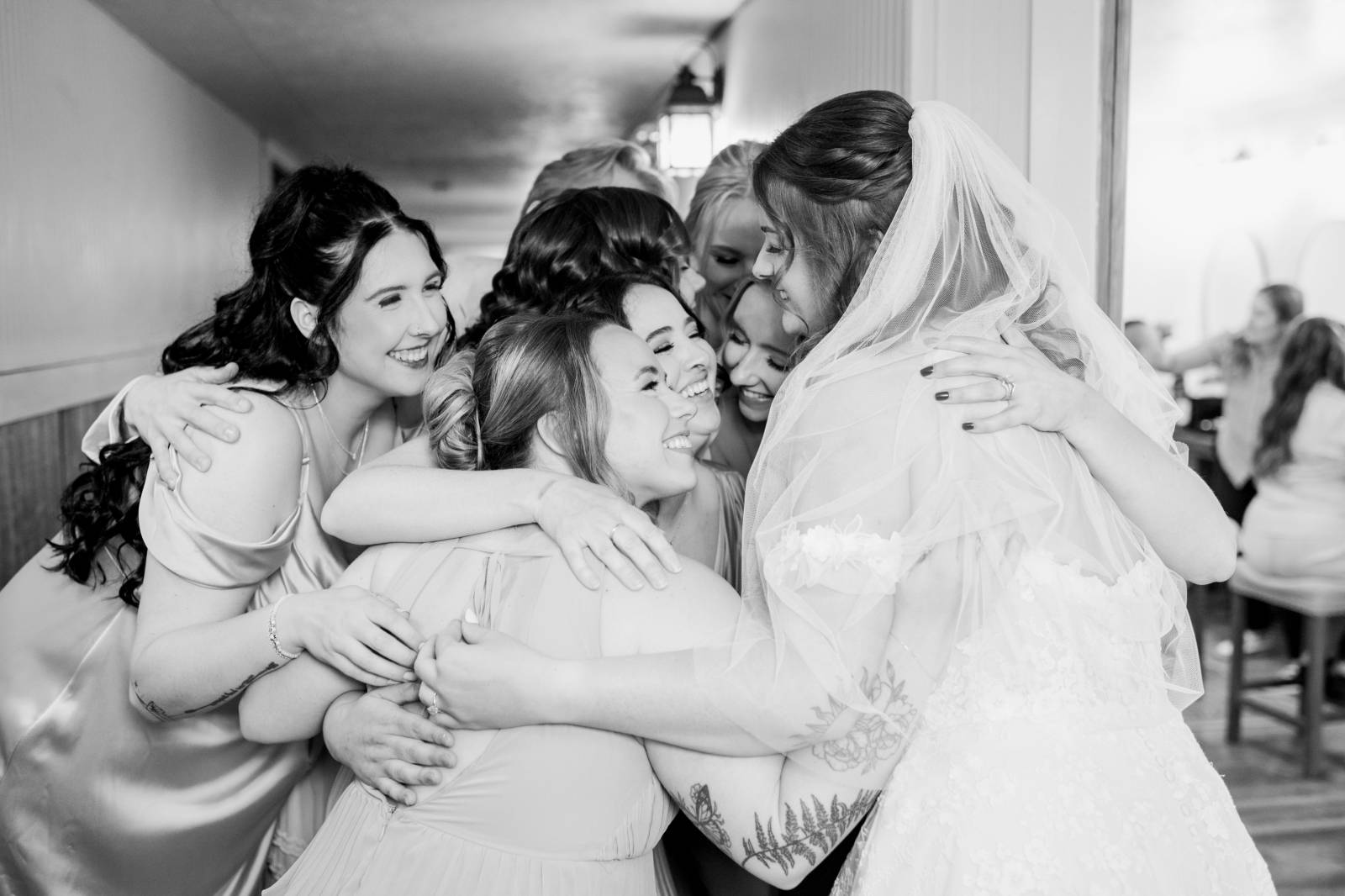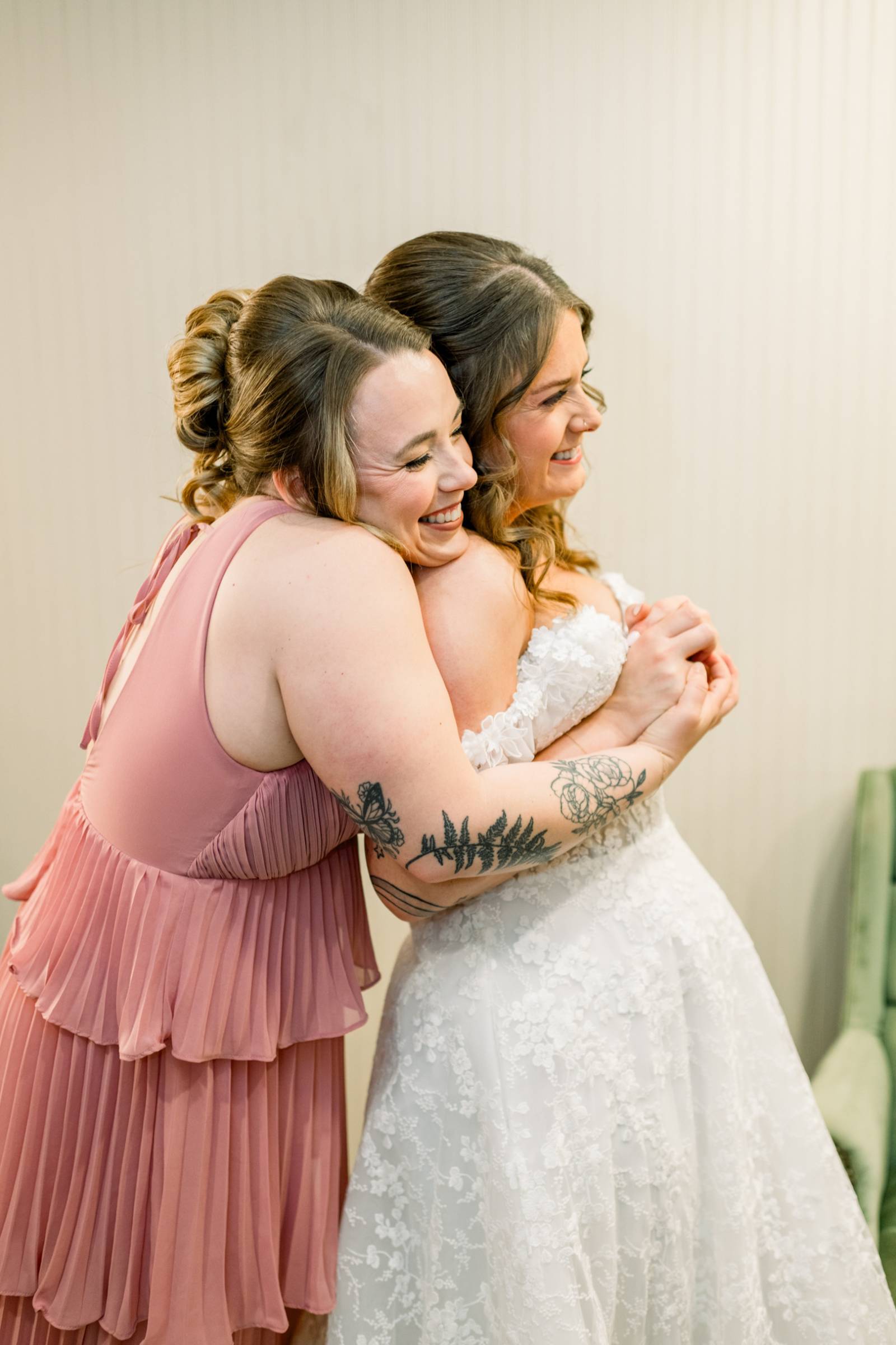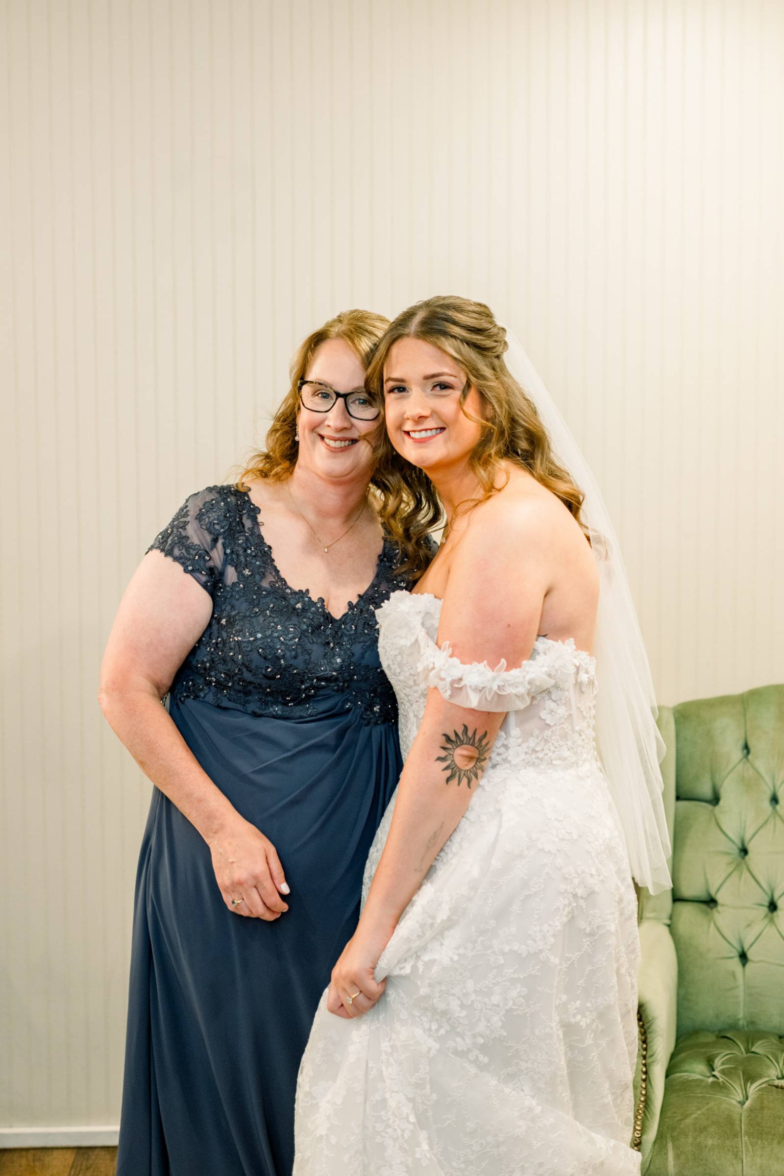 Just like with the fashions, AB On Site Beauty kept every makeup and hairstyle unique, yet harmonious. The makeup was soft and glamorous, enhancing their natural beauty with subtle contour, shaped brows, and neutral tones. Jenna’s hair was loosely waved, then pulled into a half-updo perfect for her fingertip-length veil.
