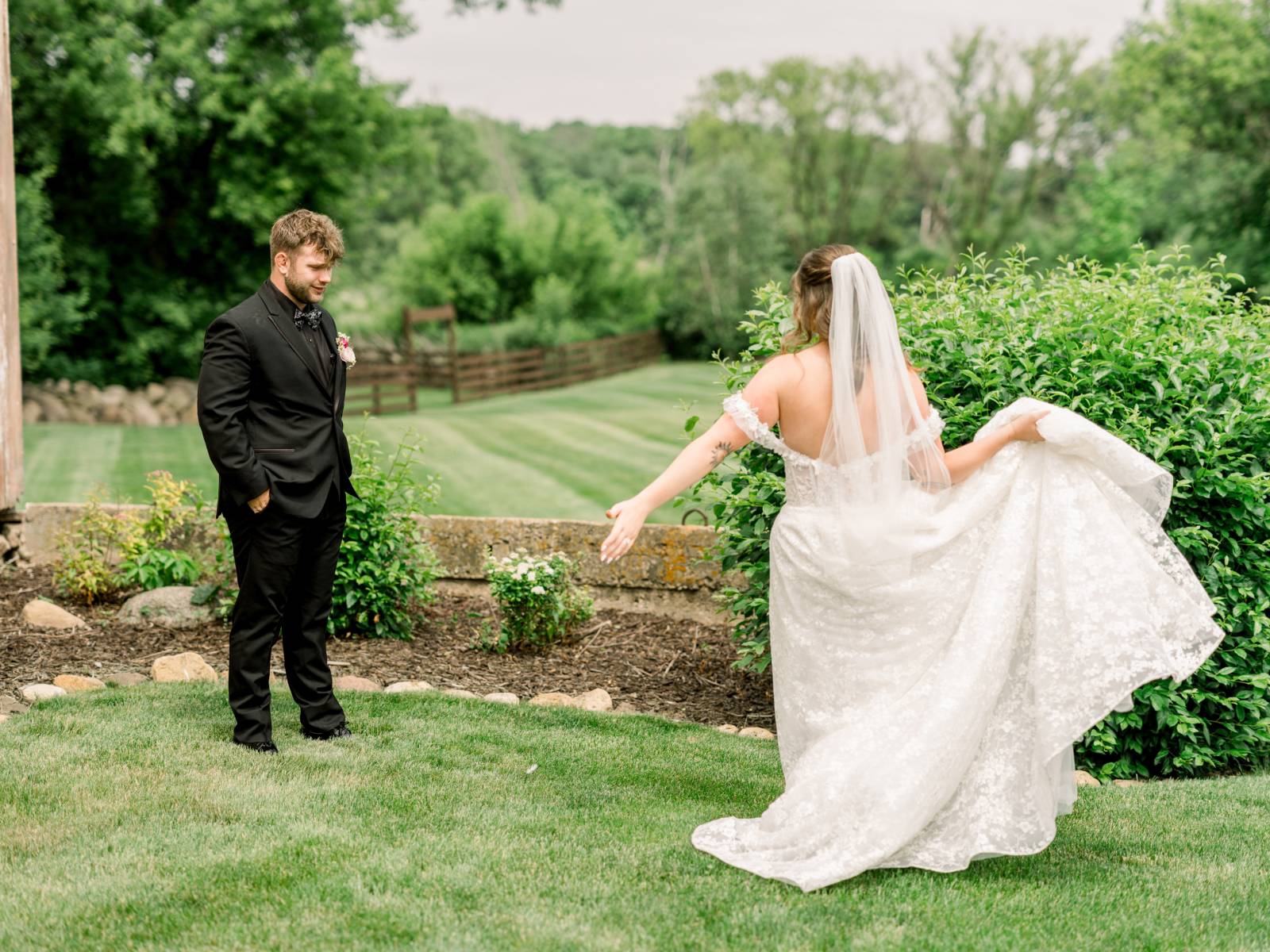 Their first look was especially significant for Cam. After all of their years together and all the wedding planning, he realized their day was finally here. Even though they had only been apart for a few hours to prepare, he already missed Jenna and was so excited just to be around her and celebrate their love.