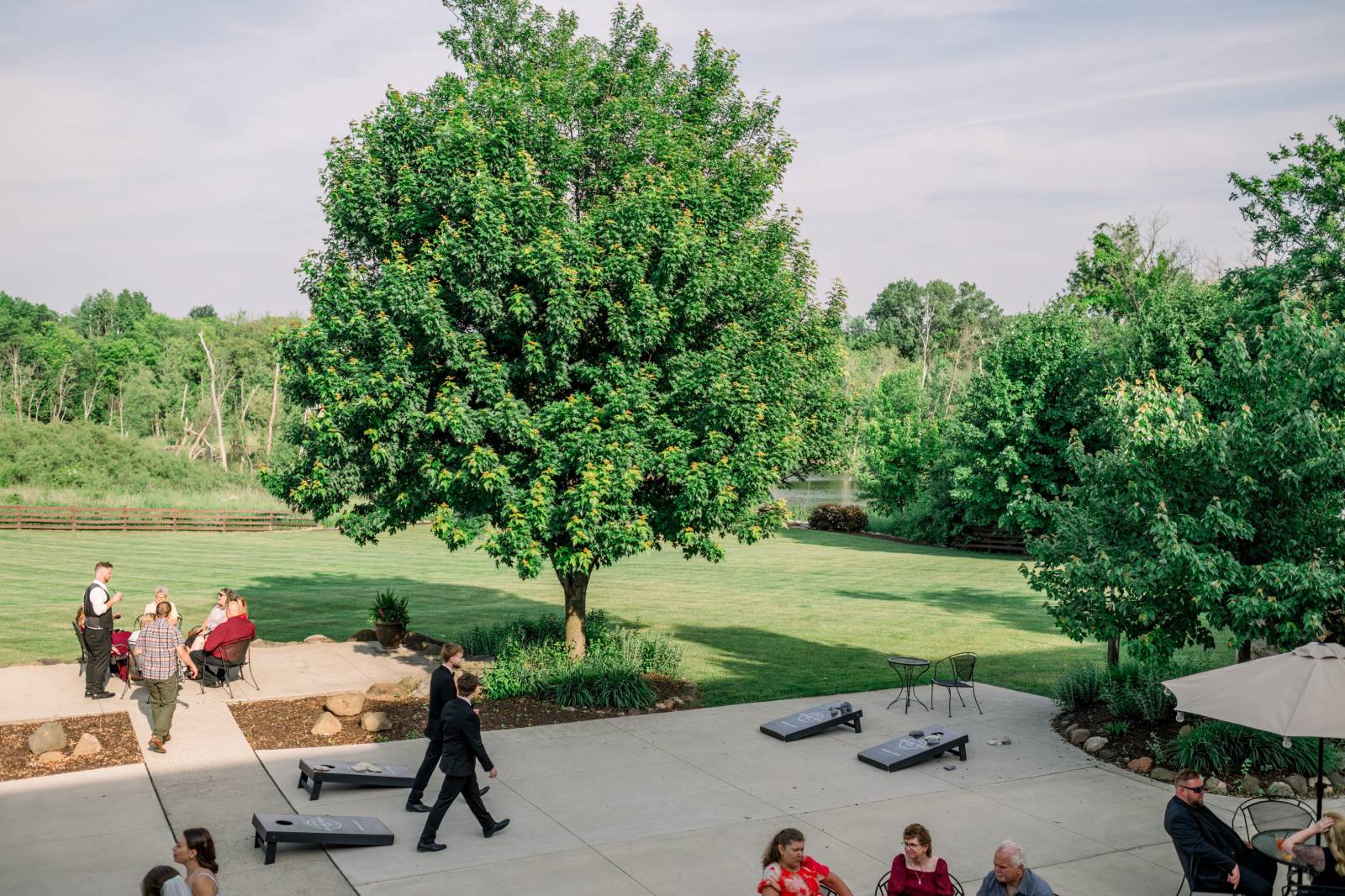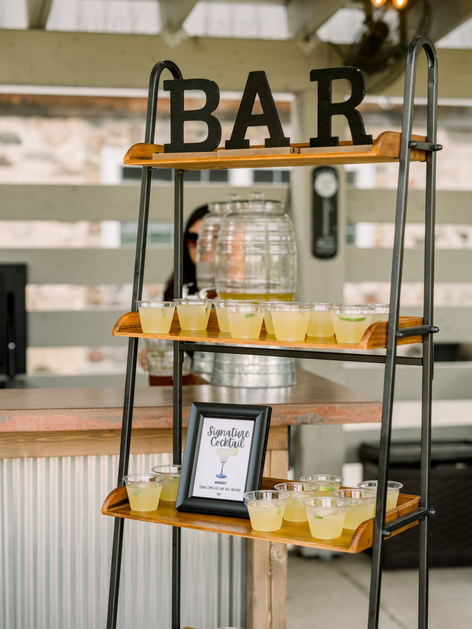 Before a delicious dinner from North and South Seafood & Smokehouse Catering, guests played yard games, enjoyed appetizers, and sipped signature cocktails named after the couple's two cats, Jinx and Jazzy.