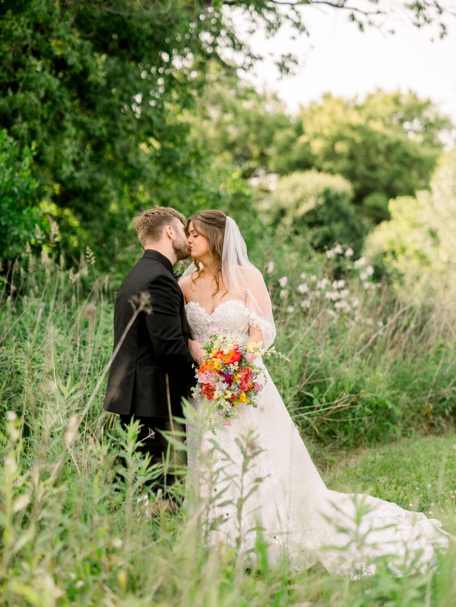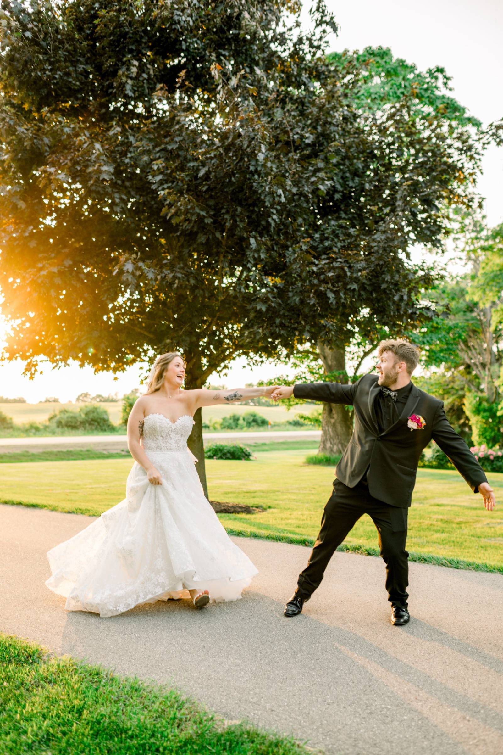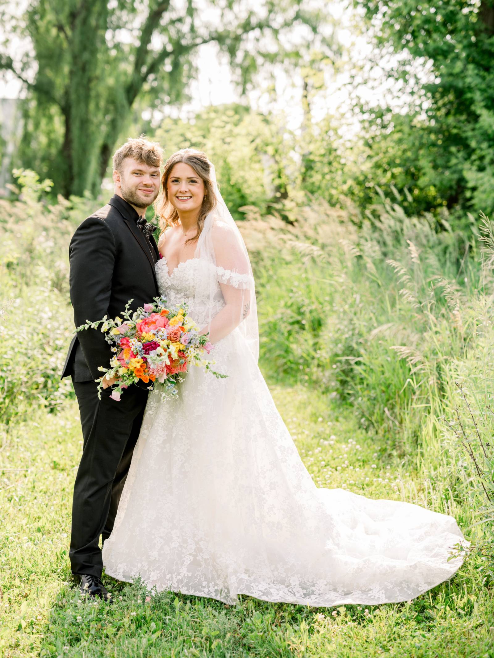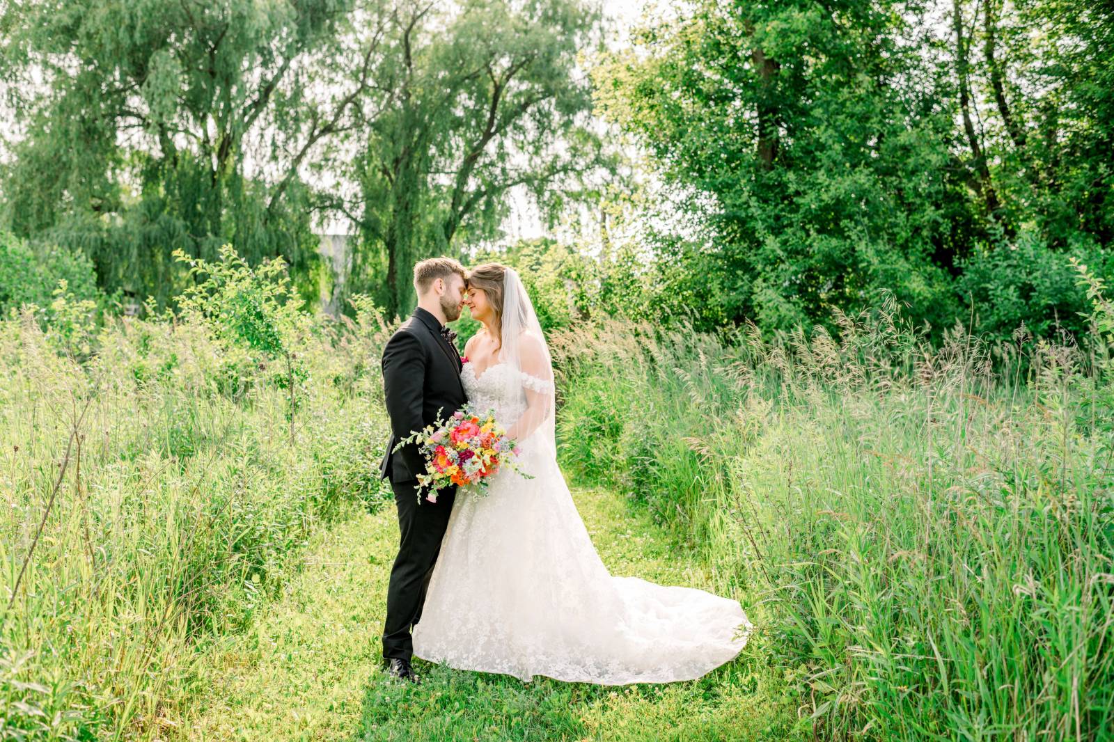 Larissa Marie Photography & Videography had no shortage of beautiful locations to capture portraits and candid moments. Their signature style preserved every pop of color and detail as the day progressed and the celebration shifted between indoor and outdoor locations. Golden hour photos were a must before the official first dances on Harvest Moon Pond’s patio.