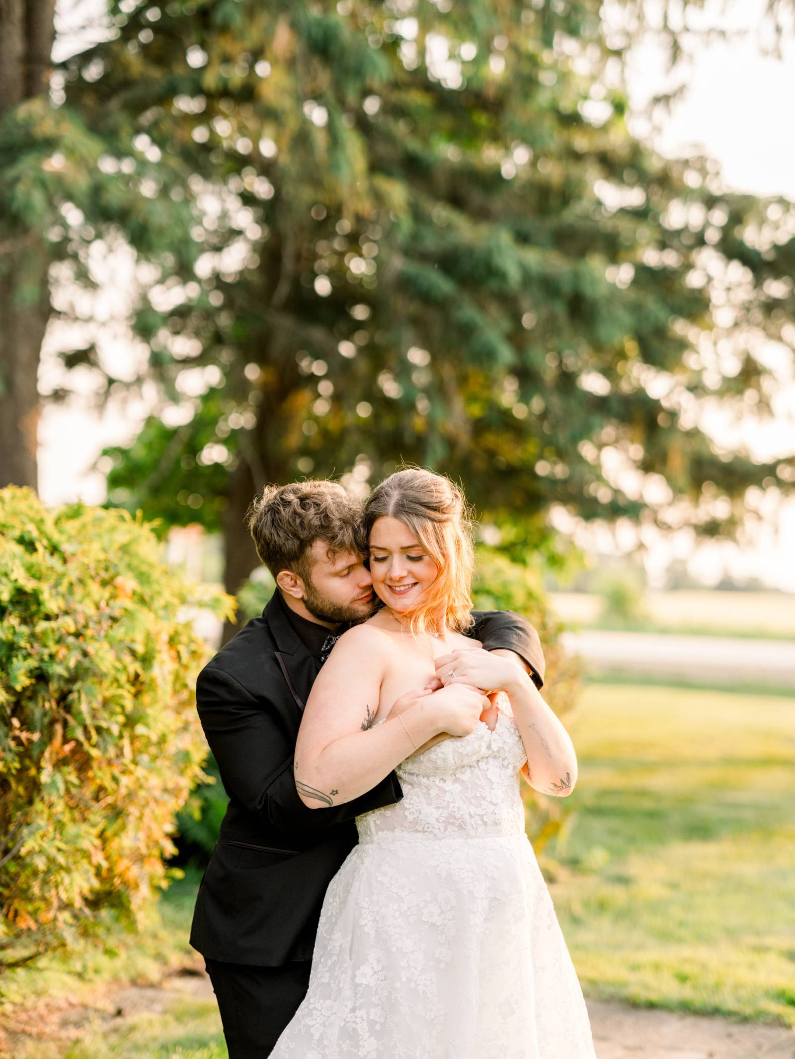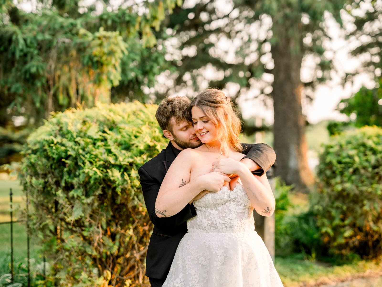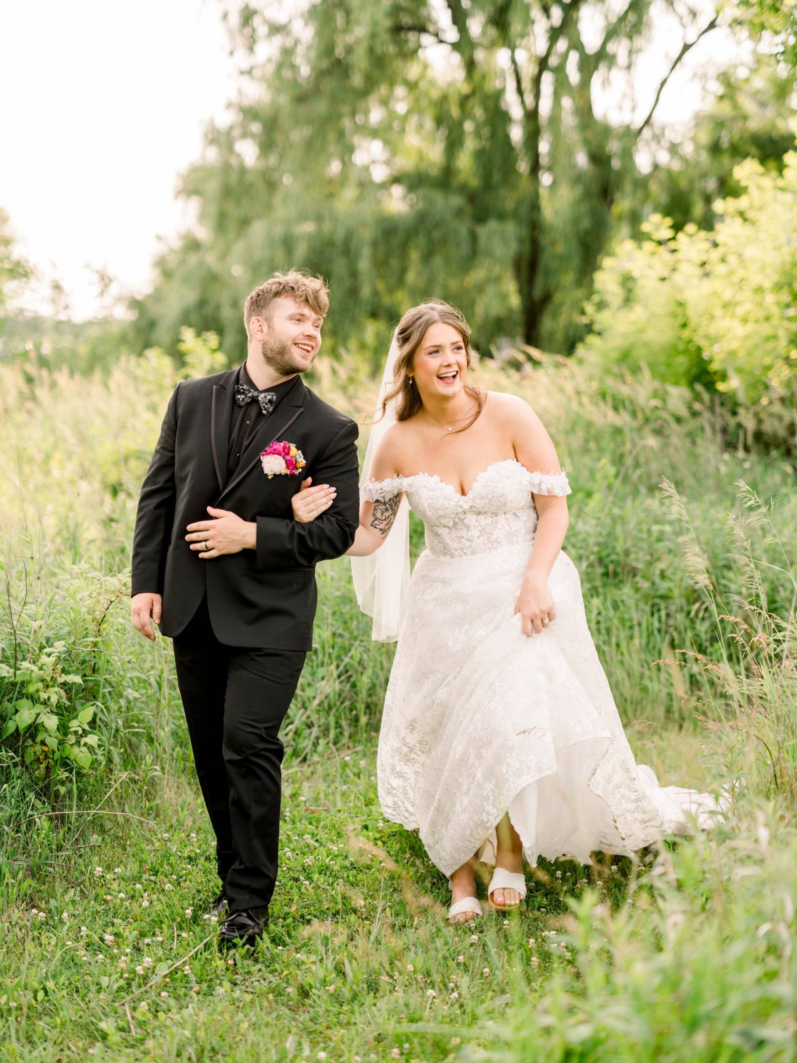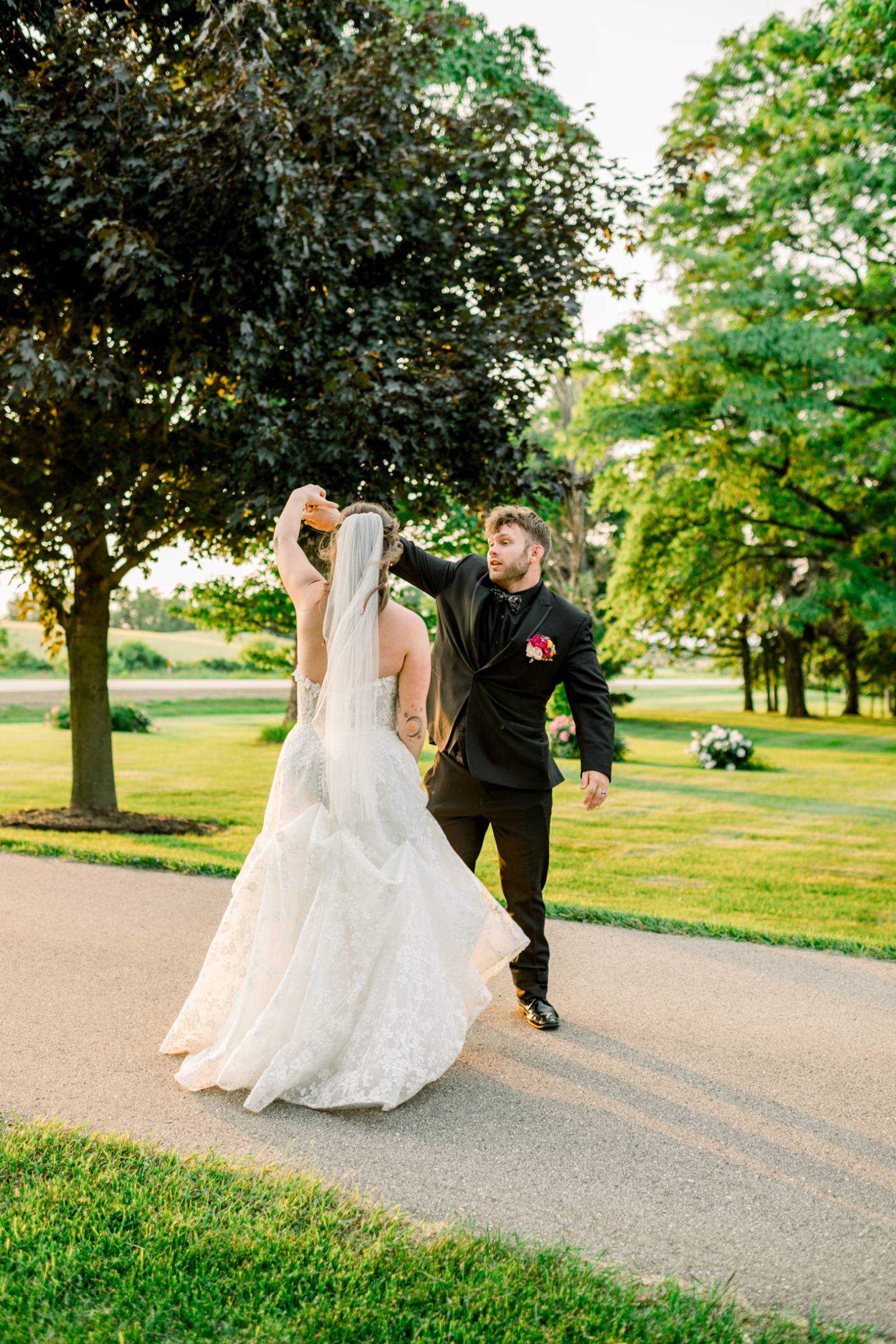 Larissa Marie Photography & Videography had no shortage of beautiful locations to capture portraits and candid moments. Their signature style preserved every pop of color and detail as the day progressed and the celebration shifted between indoor and outdoor locations. Golden hour photos were a must before the official first dances on Harvest Moon Pond’s patio.