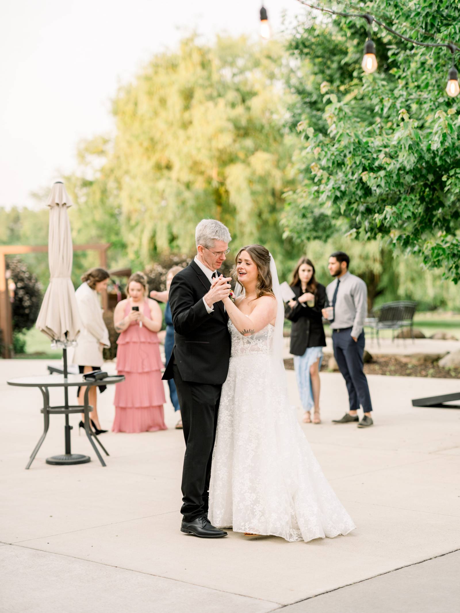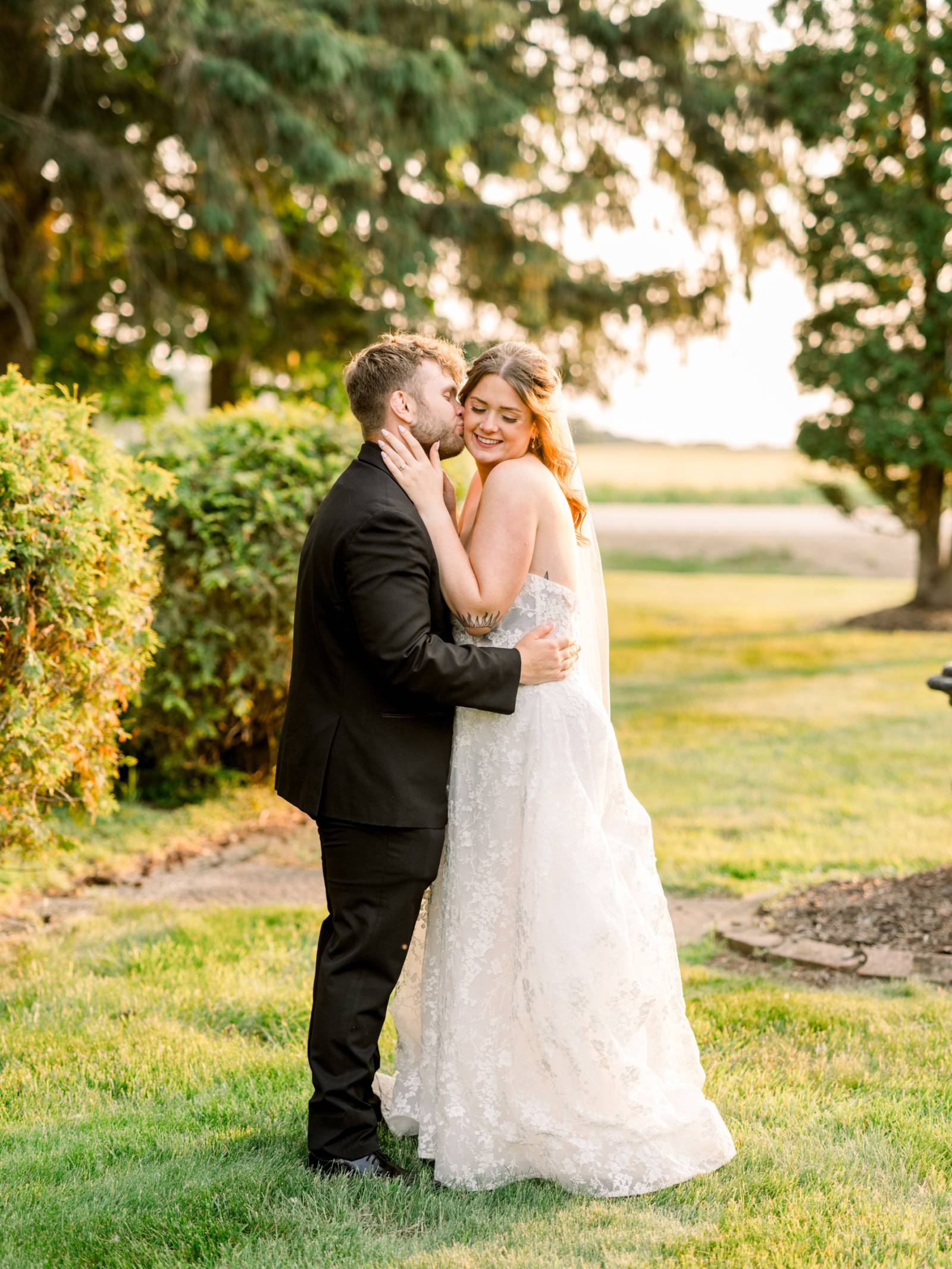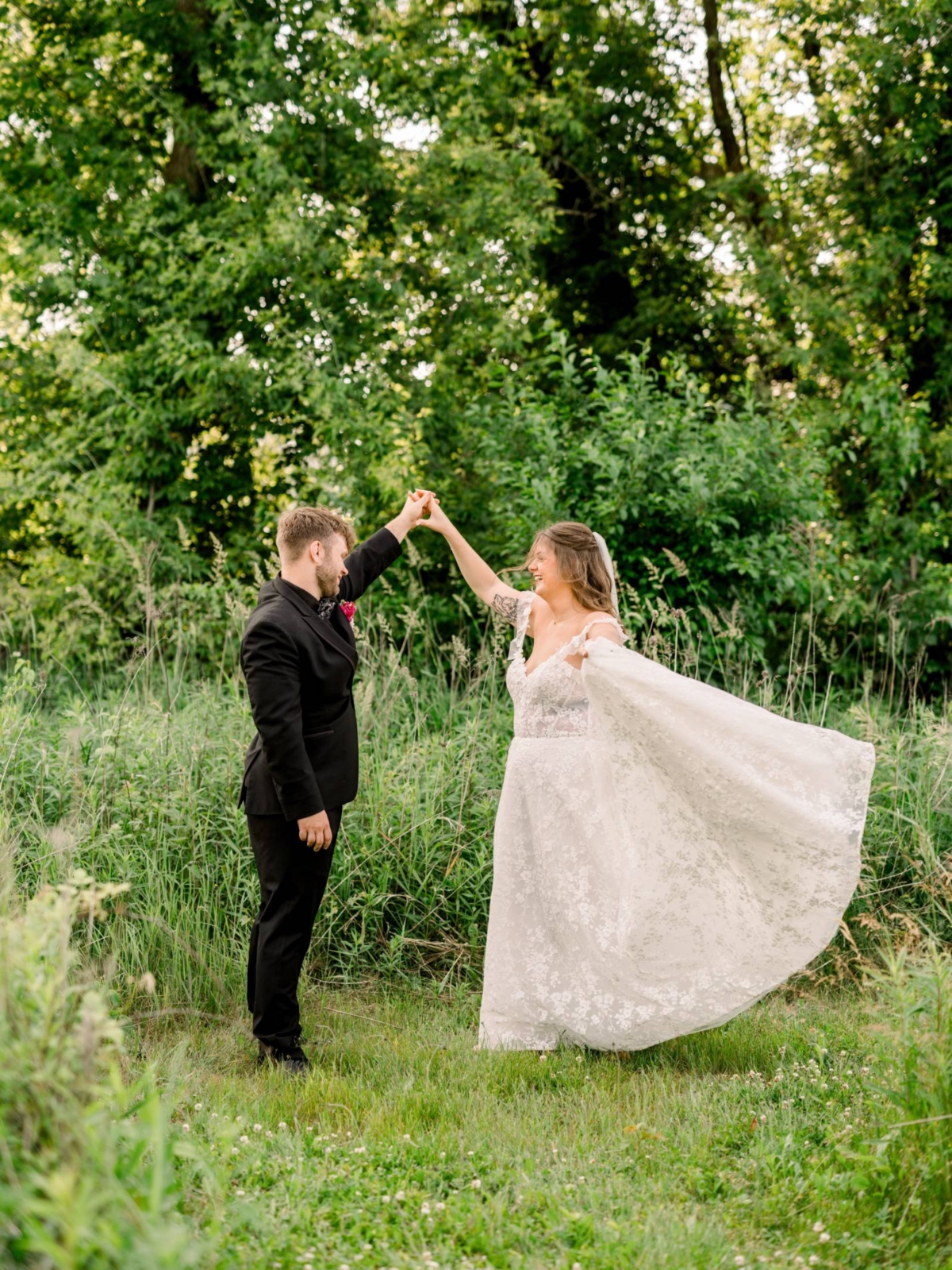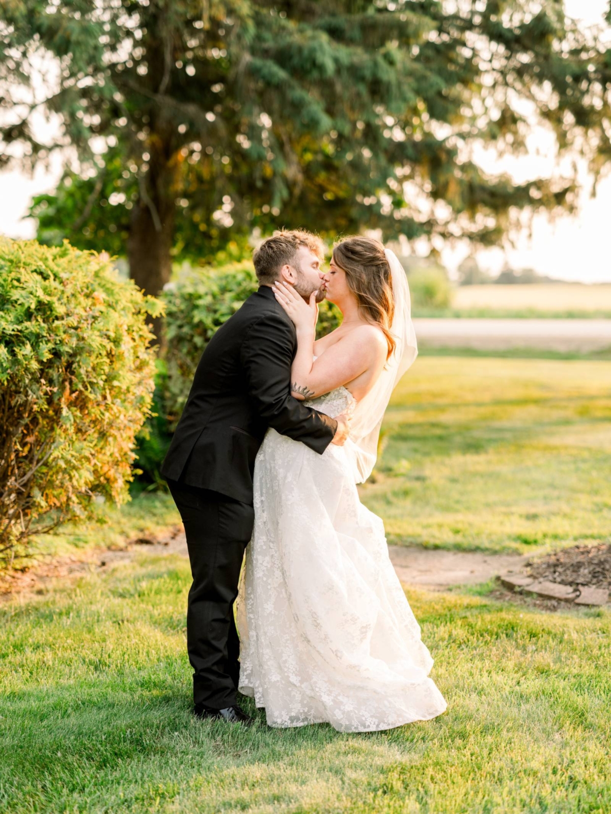 Larissa Marie Photography & Videography had no shortage of beautiful locations to capture portraits and candid moments. Their signature style preserved every pop of color and detail as the day progressed and the celebration shifted between indoor and outdoor locations. Golden hour photos were a must before the official first dances on Harvest Moon Pond’s patio.