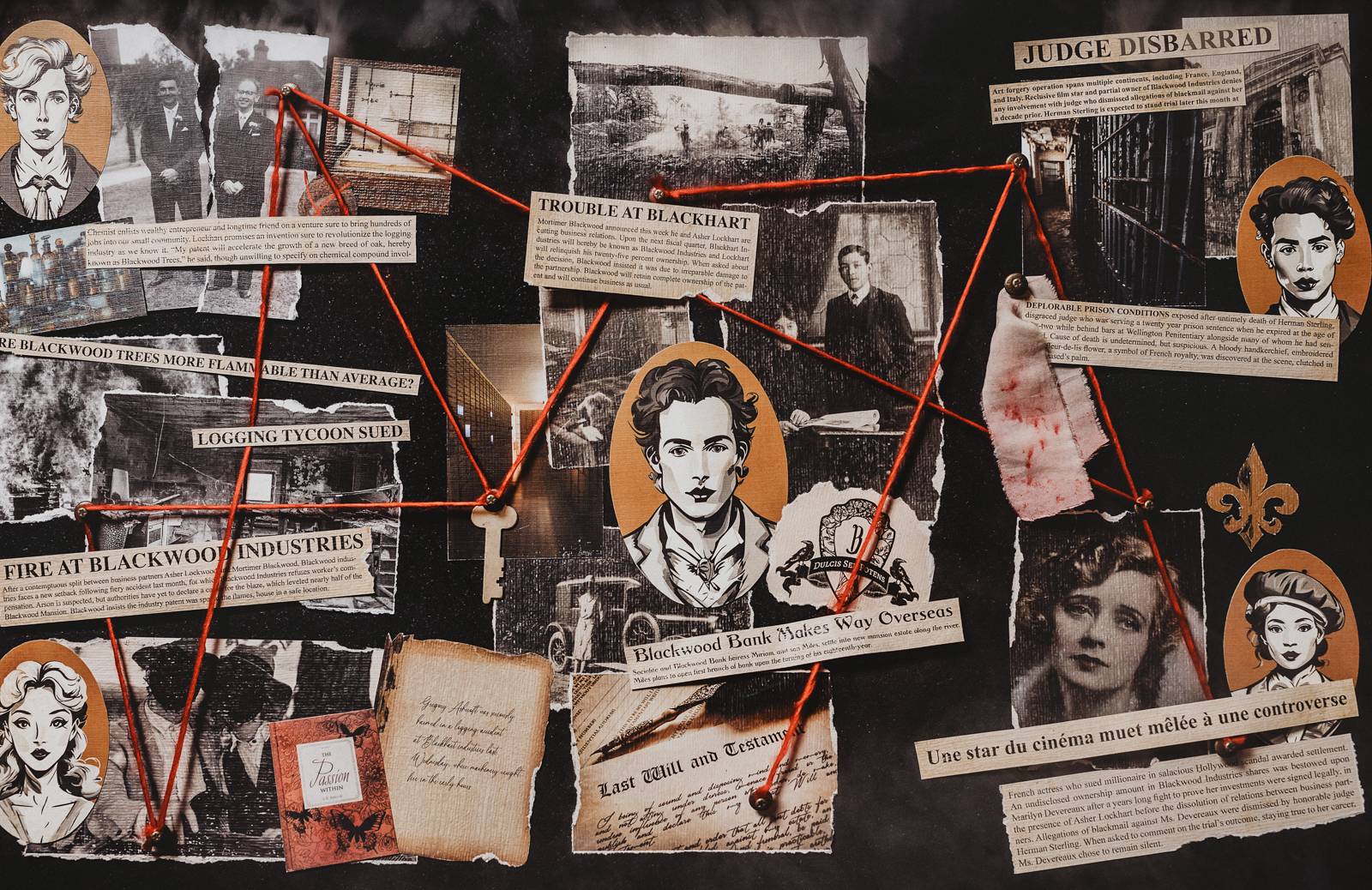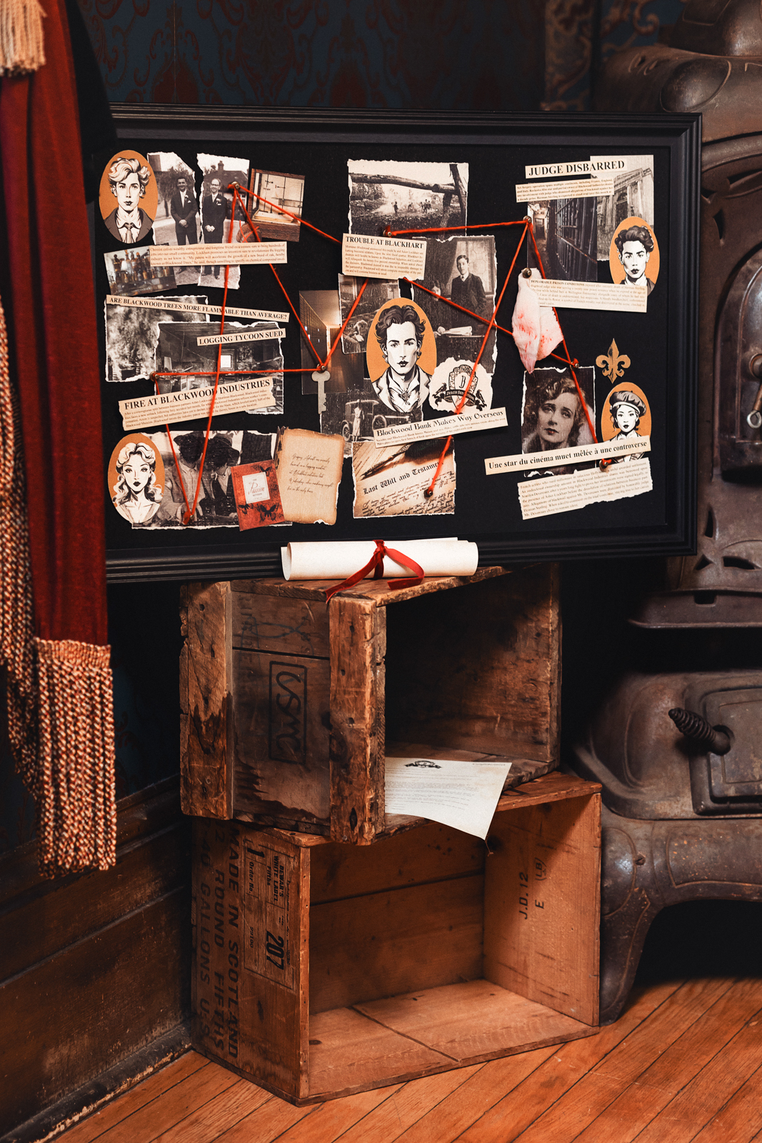 AB On Site Beauty expertly provided hair and makeup services to transform each guest into their assigned character. Their artistry added another layer of authenticity and immersion to the evening’s thrilling adventure, ensuring every participant looked the part and fully embodied their character as they studied clues, explored the evidence board, and eventually solved the puzzle to win the game.