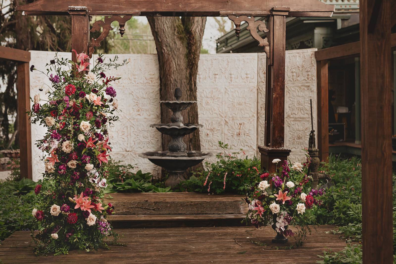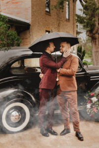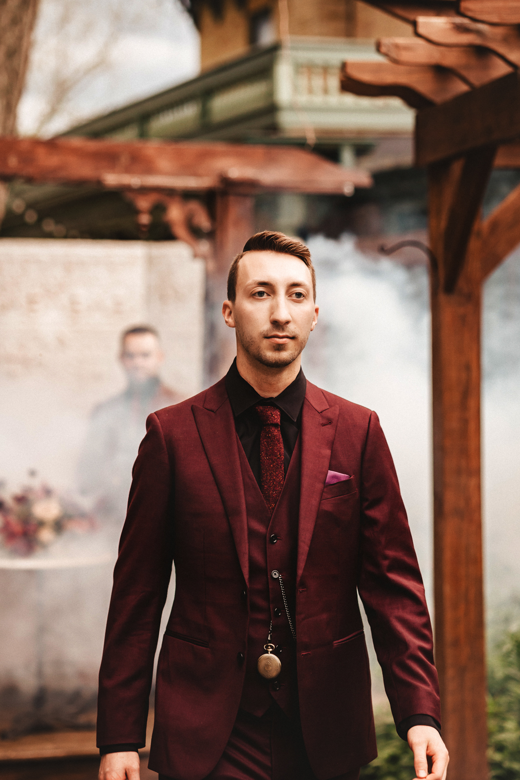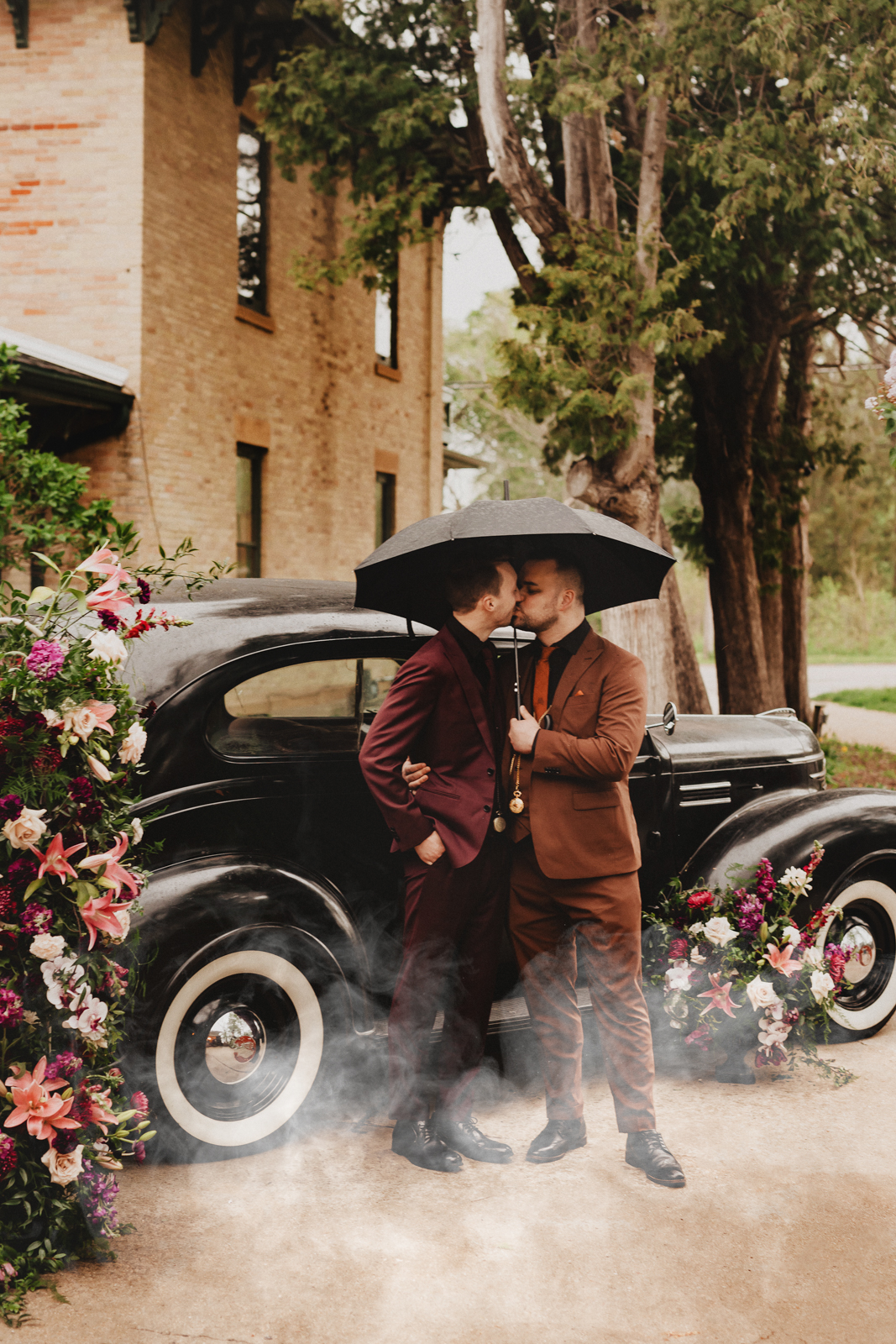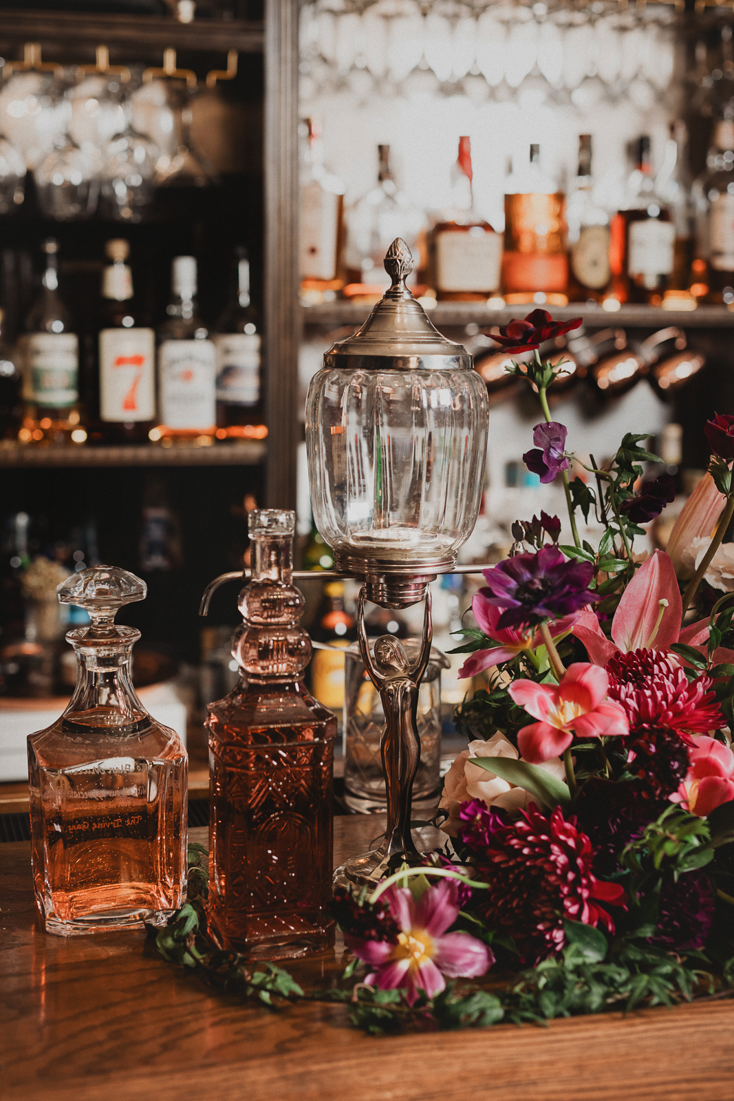 With its historical 1865 Italianate mansion, lush outdoor gardens, 2One Speakeasy offering snacks and creative craft cocktails, and more, the Iron Amethyst Inn was the perfect one-of-a-kind venue for this moody and mysterious celebration located just 25 minutes west of Madison. Nodding to the time period of their property, they also provided a vintage car for photo ops for the couple and their guests!