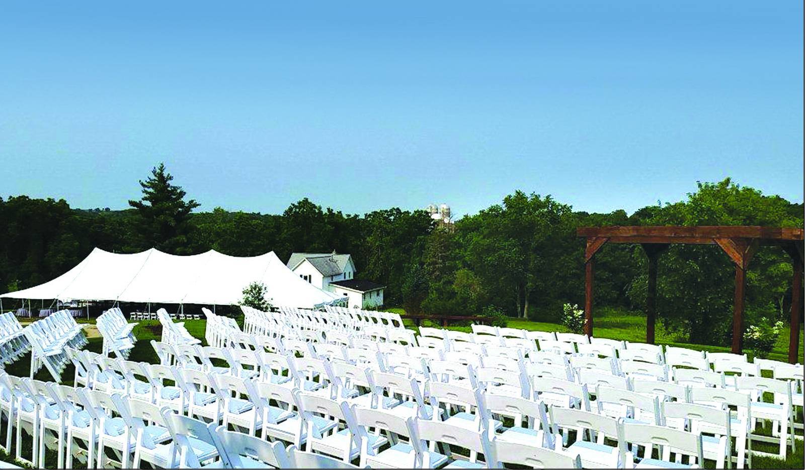 Durable tents, French window sidewalls, rustic rental items, audio and lighting equipment, dance floors, tables, linens, chairs, headers, portable restrooms, sinks, and more, Bucky’s Rental will make your special day a success! From a casual outdoor ceremony to an elaborate reception, rain or shine, Bucky’s Rentals has your wedding day covered. At Bucky’s, they provide so much more than beautiful tents and excellent equipment. Your wedding celebration is both their passion and priority!
