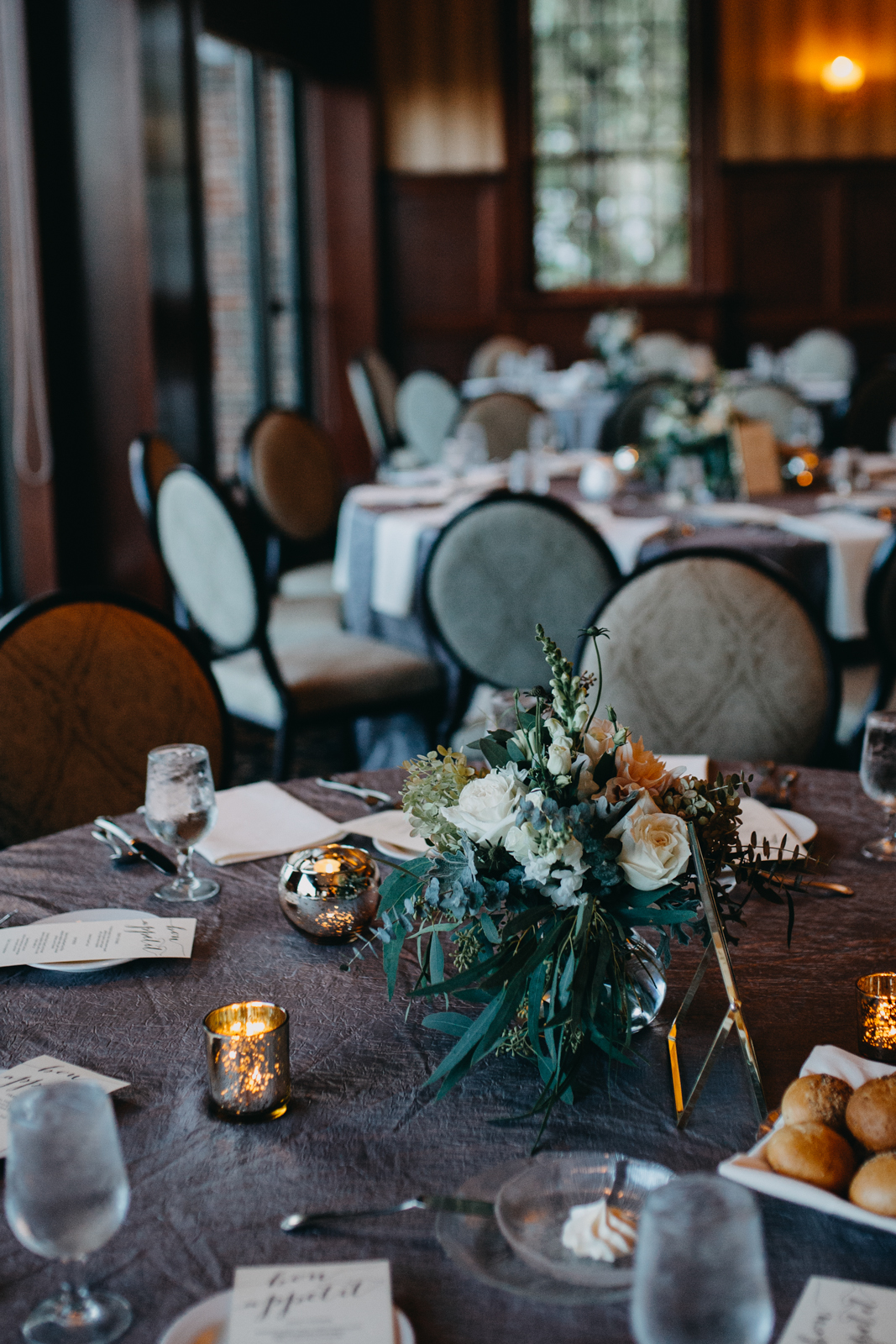 TELL US ABOUT THE FOOD, DESSERT, AND ANY SPECIALTY BEVERAGES ON THE MENU: We worked with The Madison Club‘s Chef, Adam, on our menu. I used to work at the Madison Club, and my favorite fall food was the Butternut Squash Soup. We made sure to have that and a salad as the first course, and everyone loved it!