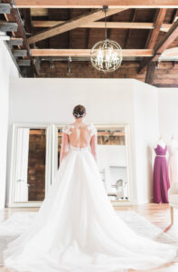 TELL US ABOUT YOU AND WHAT YOU OFFER: What is really cool is that our boutique is located in a restored tobacco warehouse which makes the space quite unique and different from the traditional bridal store. Blushing Willow specializes in bridal gowns & accessories for the bride, but we also offer two lines of bridesmaid dresses and will soon be adding tuxes to our offerings!