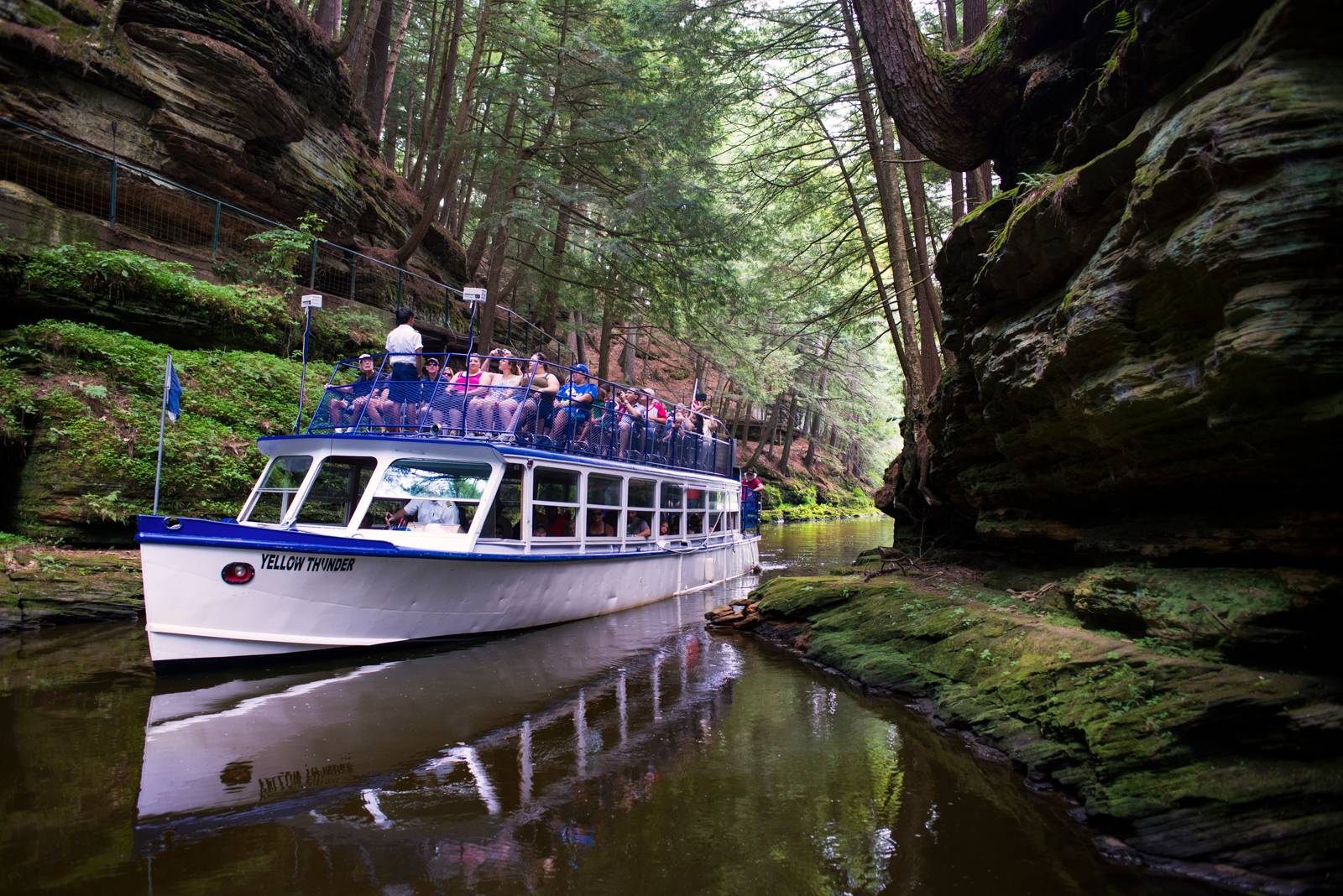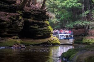 In today’s Vendor Spotlight, we are thrilled to introduce to you the beautiful Cold Water Canyon and Dells Boat Tours. This unique wedding venue is surrounded by towering sandstone cliffs, lush woods, and the glistening Wisconsin River. Your occasion with Cold Water Canyon and Dells Boat Tours begins with an exclusive charter boat excursion on the Upper Dells leading to your scenic destination. Cold Water Canyon is a strikingly beautiful tributary glen that cuts deep into the east bank of the river. Read more about our incredible vendor below, and consider booking your special day in the beauty of the landscape of this Wisconsin treasure.