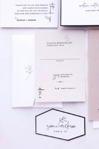WHAT SETS YOU APART FROM OTHER VENDORS IN YOUR INDUSTRY? Well, over 20 years ago, we were one of the only stationer’s designing custom stationery. Most couples were ordering out of books with a selection of 3 color combinations, and it wasn’t appealing to everyone. Couples wanted something more personalized that reflected their style and their wedding day. These days, couples still want something more personalized, but they may not have as much time to put into the designing, printing and coordinating of all the stationery components for their wedding. Being able to offer design guidance and day of planning experience helps us provide suggestions to our clients to coordinate all of their details.