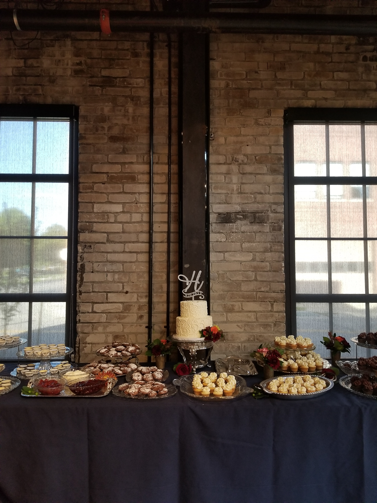 TELL US ABOUT YOUR BUSINESS & WHAT YOU OFFER: Here at The Looking Glass Bakery, we specialize in creating custom cakes and dessert tables. Desserts are becoming so much more creative, artistic, and elaborate, and we aim to help our client’s sweet visions come true! Beautifully tiered cakes can vary from the classics to colorful works of art that help tie all of the design elements together. On our dessert tables, we can include treats like cheesecake and cupcakes to donuts, pies, cookies, and even tarts to feature our couples’ favorite sweets. We truly love working with each wedding couple to create a new dessert story!