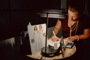 Finding creative ways to both celebrate and remember your most special day is what we’re all about. We love the idea of having a custom illustration done to look back on your wedding day. Ivy McConnell did a beautiful job showing off these brides, their style, and their love!