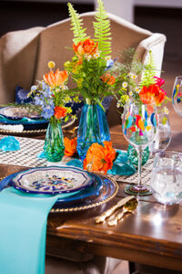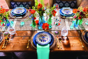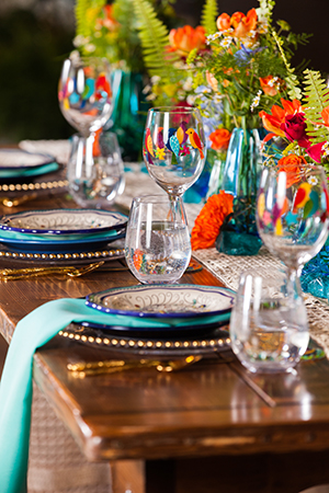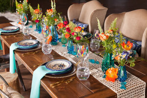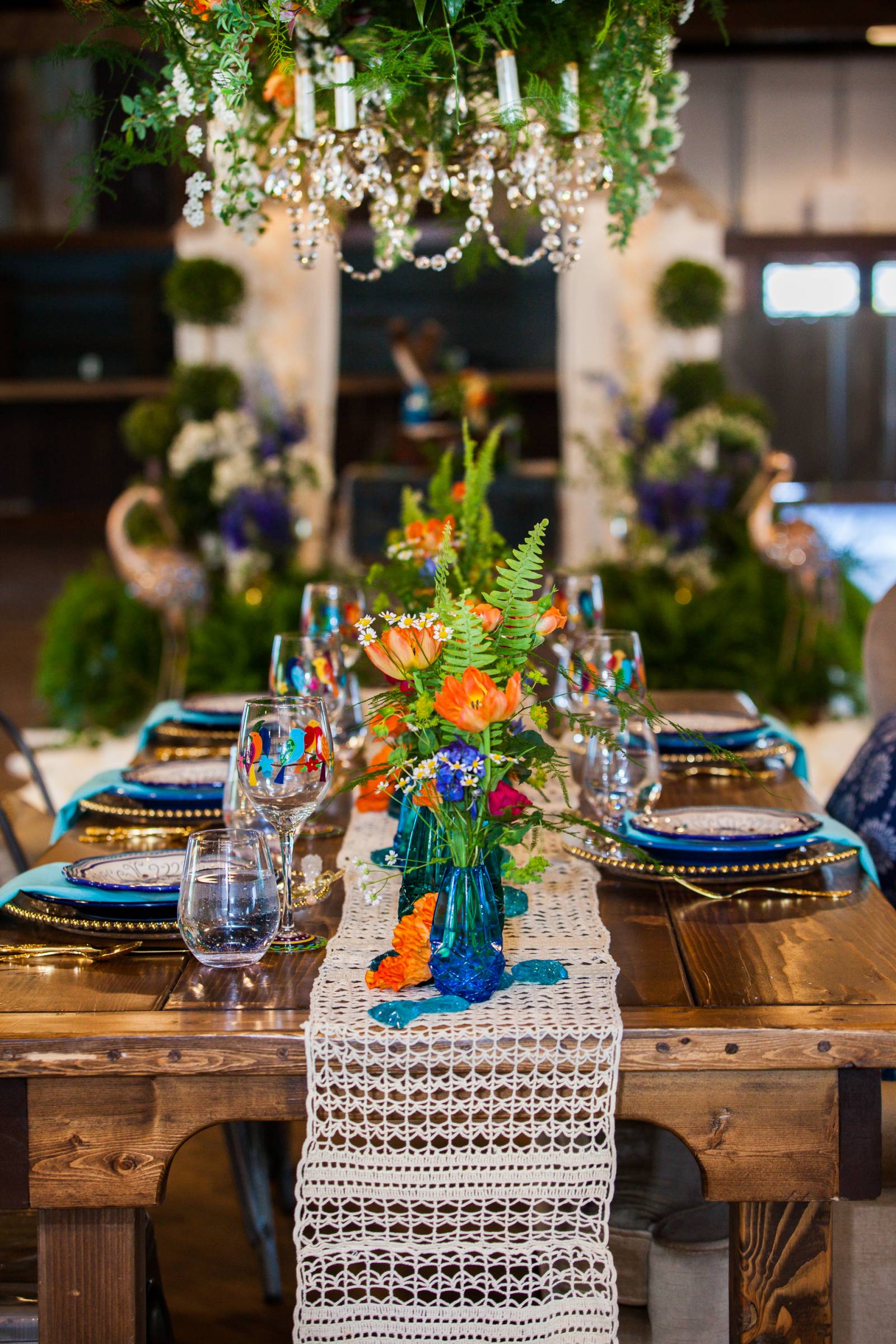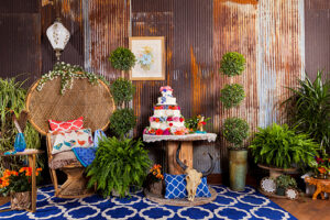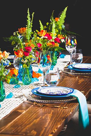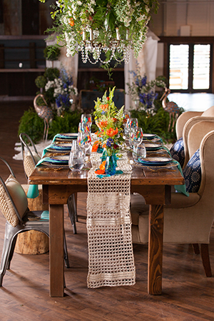 Today’s wedding scape is a combination of two fun styles, gorgeous boho with vintage touches. Coordinated and designed by The Flower Studio, get inspired by all of these free-spirited details captured by The Wedding Flashers. From wood harvest tables, a peacock chair, ivory lace table runners, blue glass vases, patterned rugs and gold flatware. incorporate these vintage inspired boho wedding details into your special day.