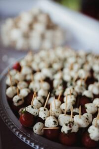 COCKTAILS & HORS D’OEUVRES: This can be elegant and trendy, but make sure not to schedule this around the dinner hour if this is all that you are serving. You don’t want your guests to be hungry, so it’s best to add this to the evening festivities before the main meal is served. This is a great opportunity to mingle with your guests, or this can keep guests busy while the couple is off taking photos. Consider signature cocktails to personalize your event.