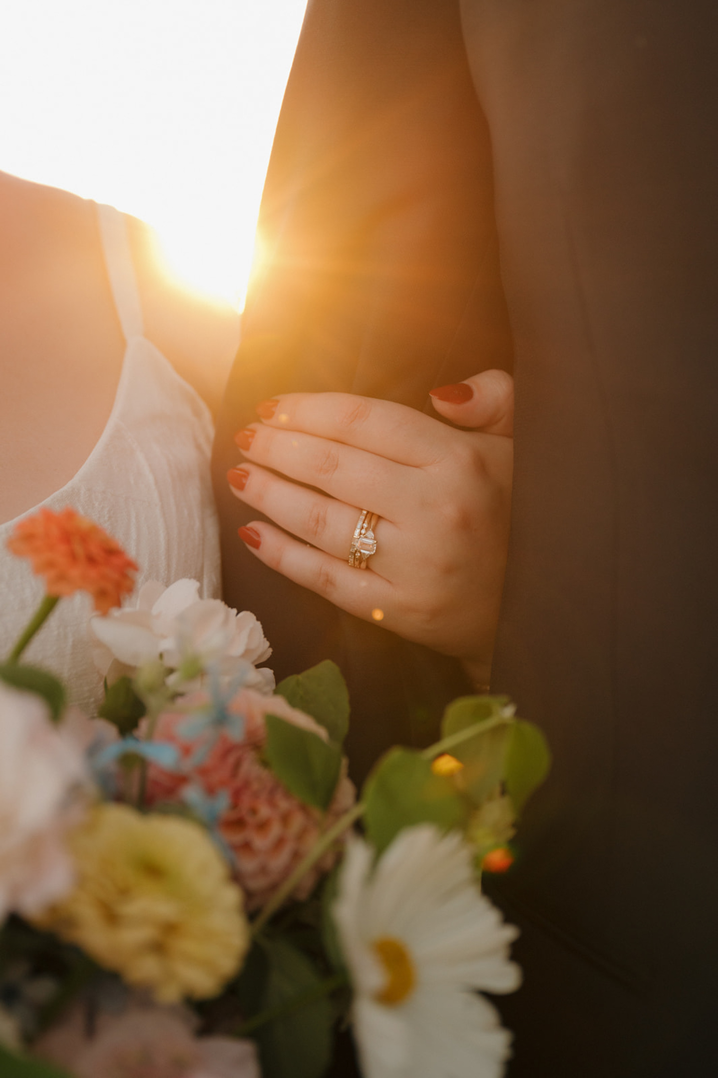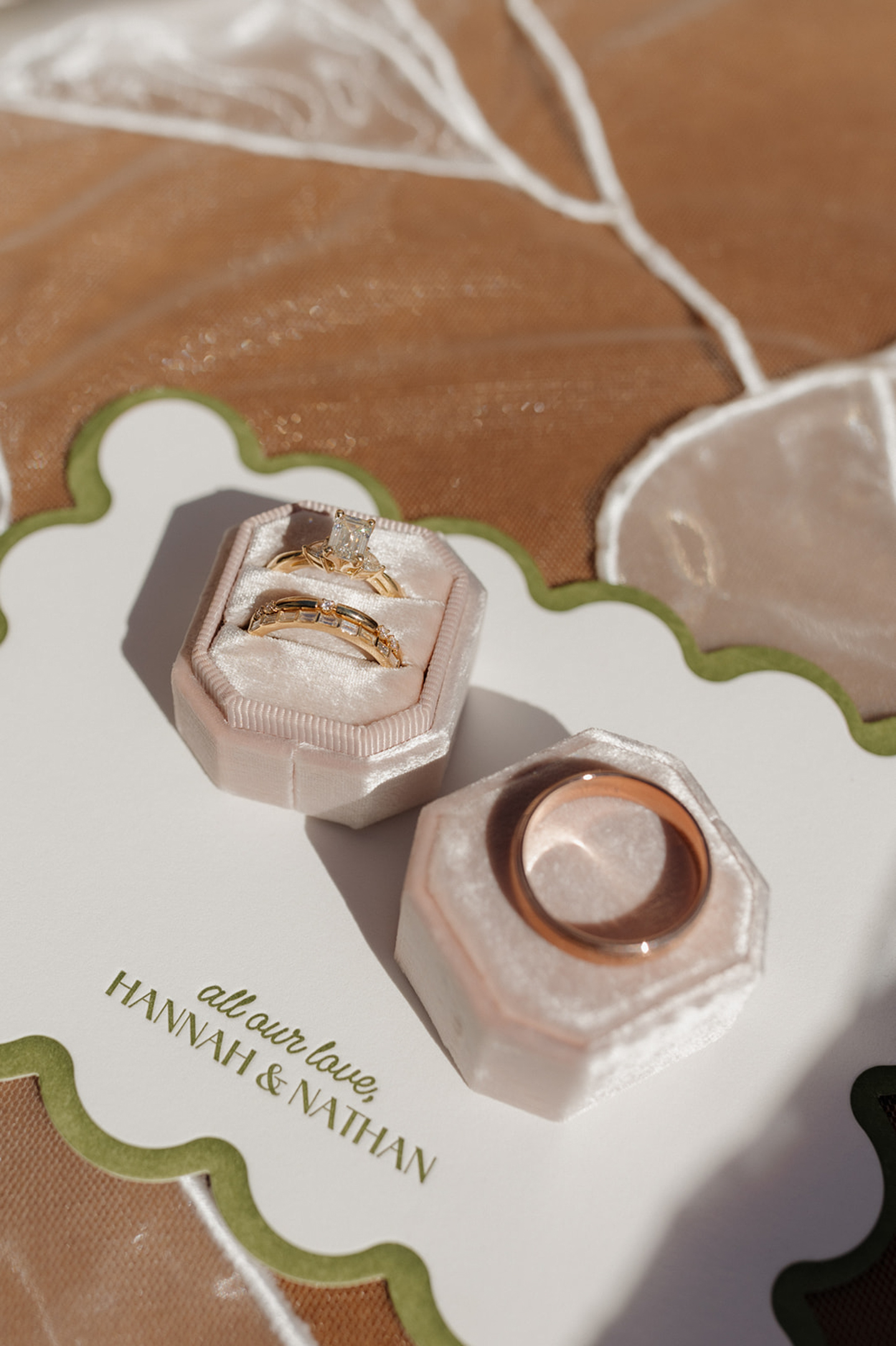 Officiant Pat Werk from Koru Ceremony helped the couple create a personal and meaningful ceremony. In addition to their vows, Hannah and Nathan did a ring warming, a tradition where each guest held and blessed the wedding bands before the ring exchange.