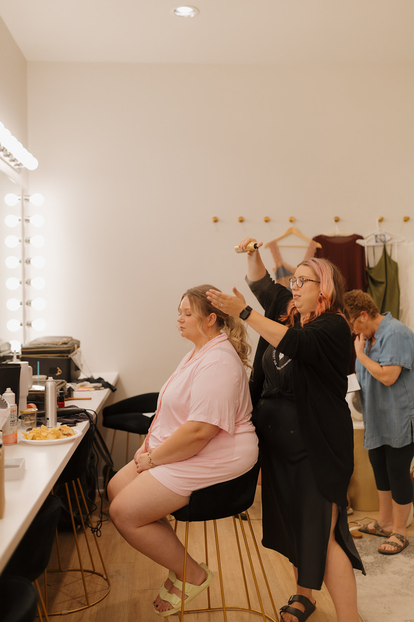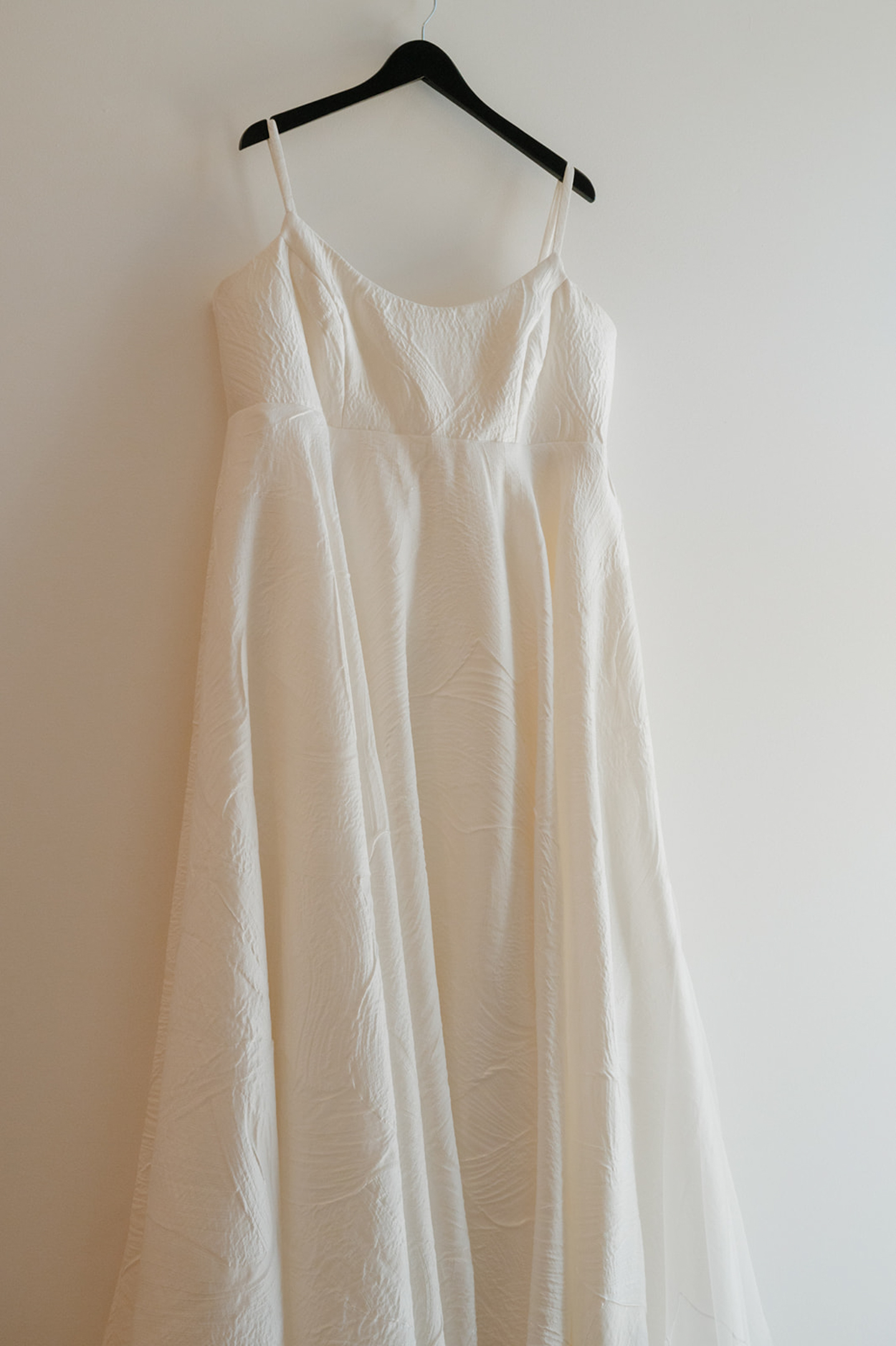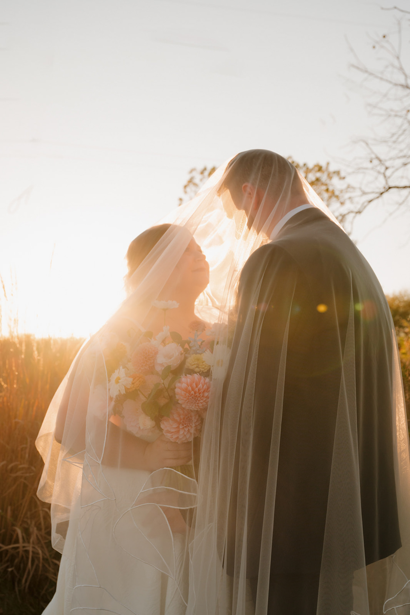 Hannah wore an elegant, textured gown from Strike Bridal Bar. Her hair was loosely curled and pulled back into a stylish low ponytail, with shorter pieces framing her face. A luxurious, chapel-length tulle veil was also added for the ceremony. Hair and makeup stylist, Rooted Culture, further accentuated Hannah’s natural beauty with a subtle peachy palette for her eyeshadow and blush.