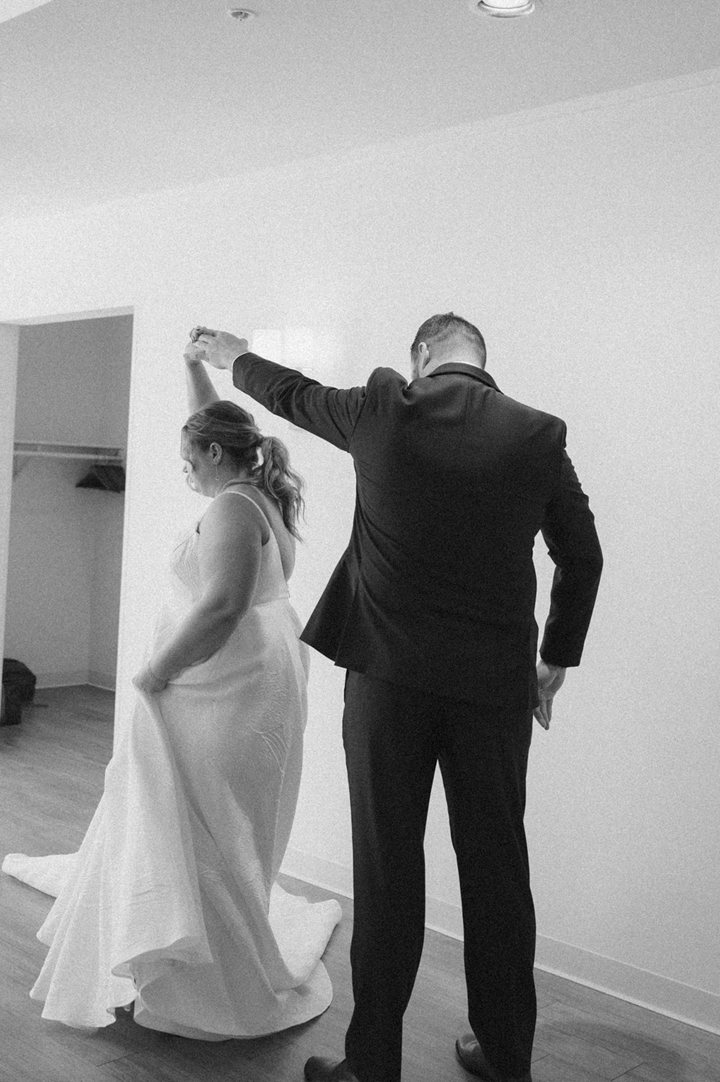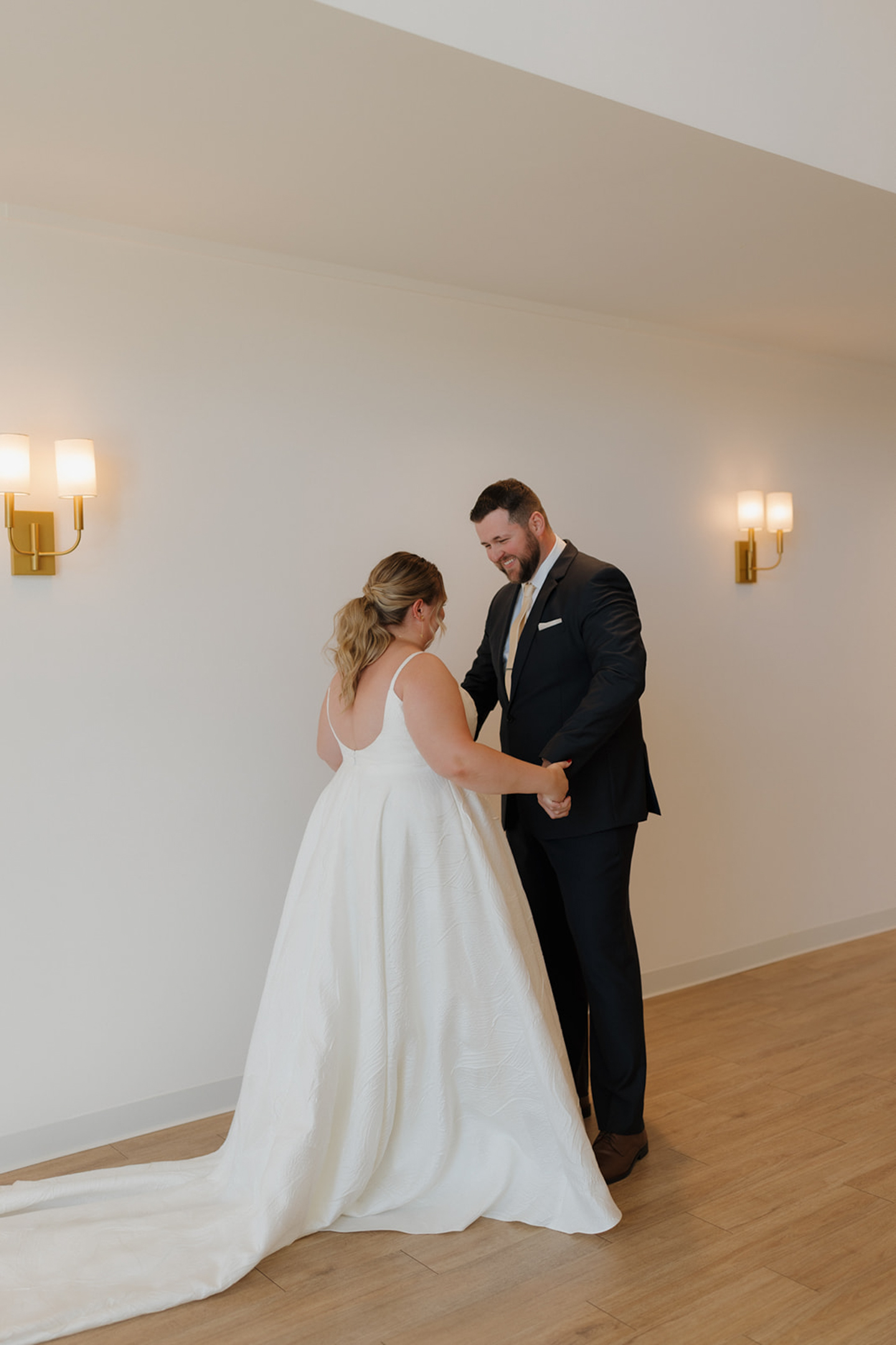 The Eloise, a stunning two-story venue built specifically to host weddings, served as the backdrop for the day. Hannah and Nathan had plenty of space to prepare in separate suites on either side of the ceremony space.