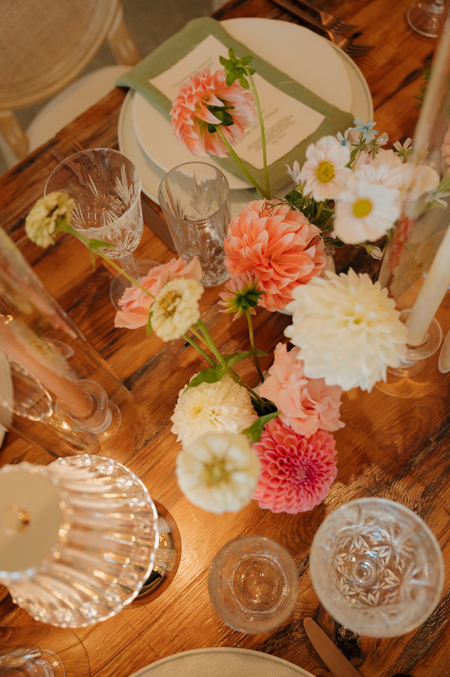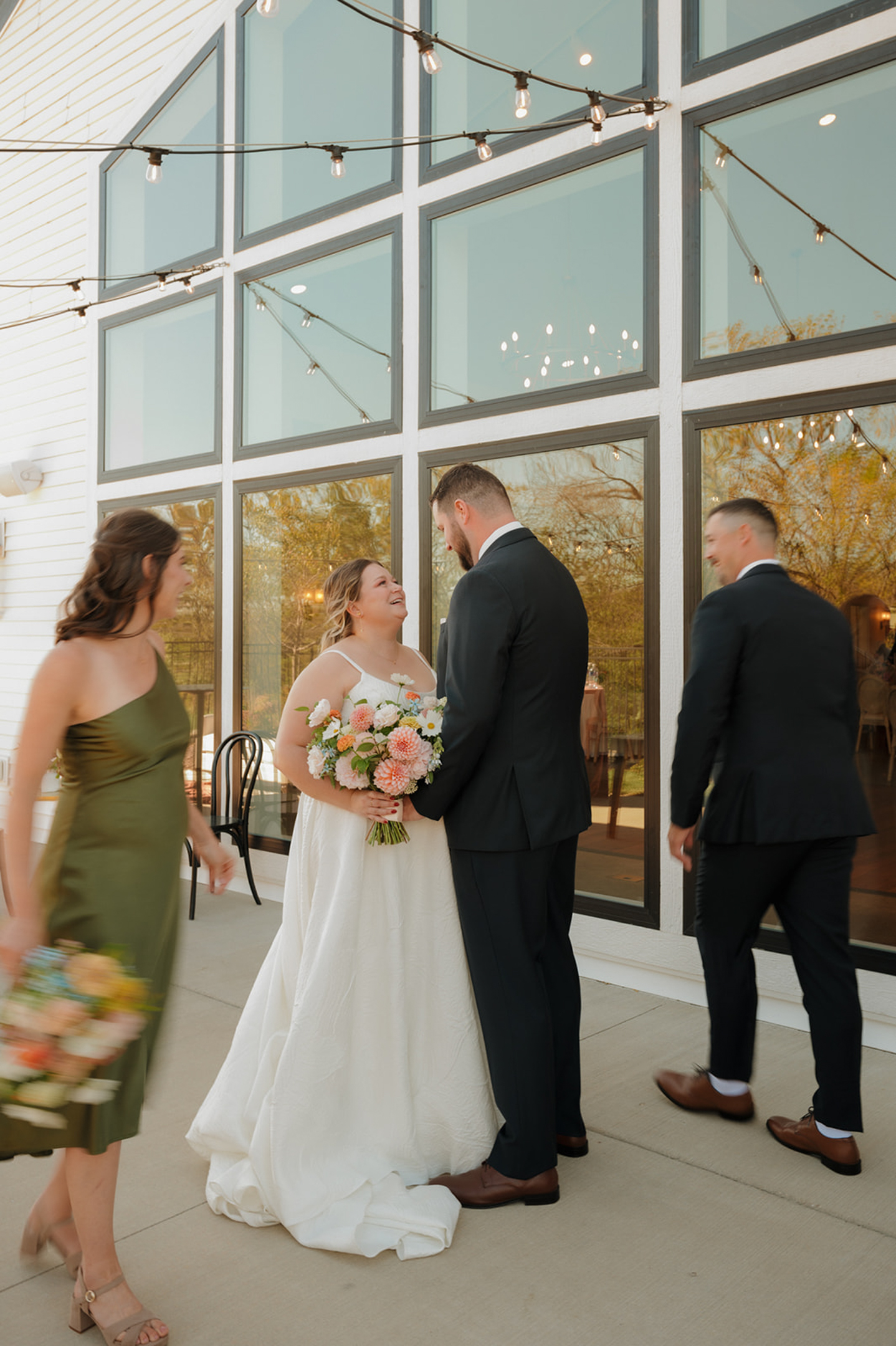 She also wanted to give back to the community, donating their beautiful wedding flowers to Petal It Forward, an organization that gives flowers to people who need them most. The florals were broken down, rearranged, and dropped off at two assisted living homes.