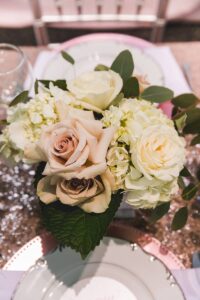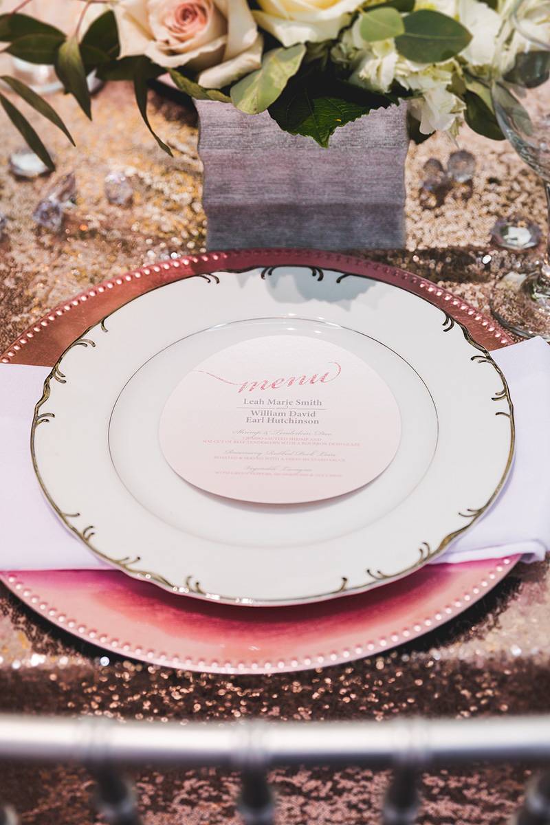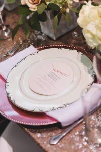Whimsical details are at the very center of this elegant wedding scape coordinated by Celebrate Chaos. From a pretty color palette of blushes and creams with metallic accents to paper goods, mini bottles of Rose’, calligraphy chair signs, and rose gold linens, this theme runs through the entire design. Peek through The Wedding Flasher’s photographs as you feel your hearts flutter just a little bit, we guarantee.