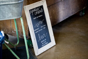 DID YOU USE ANY SPECIALTY CHAIRS, LINENS, CHARGERS, GLASSWARE OR DINNERWARE? We ordered some unique antique pieces from A la Crate that really added character to the event: antique wooden sewing drawers were used for table centerpieces, a bar cart and steel-basins for beverages, a small folding table for the cake-display, a metal archway for the ceremony.