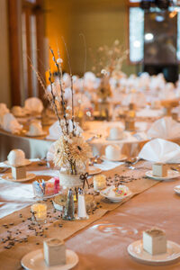 A winter wedding has never looked so appealing with its beautiful russet tones and textures. And when a crisp blanket of fresh snow covers the glistening trees in the woods at Wild Rock Golf Club in the Wisconsin Dells, well, it makes for the most stunning canvas for Erin + Tyler's natural and rustic wedding celebration. These gorgeous photos captured by LK Bridal Studio certainly showcase the absolute beauty of the winter season here in Wisconsin and how it definitely should be an option when considering what season to tie the knot. I'm completely loving the varying shades of the bridesmaid dresses in Espresso, Cappuccino, and Rum Pink from Brides N' Belles that just sets the tone so perfectly.