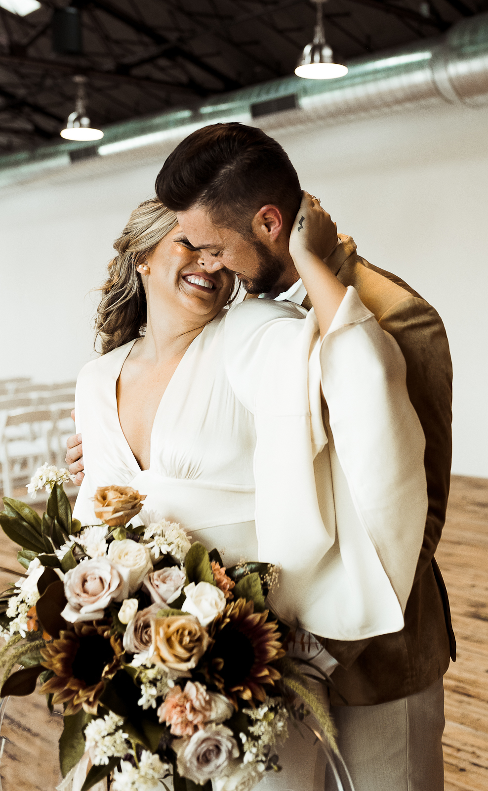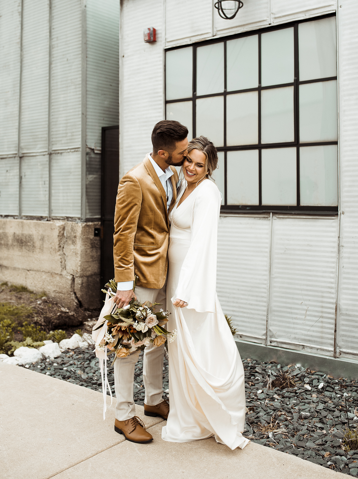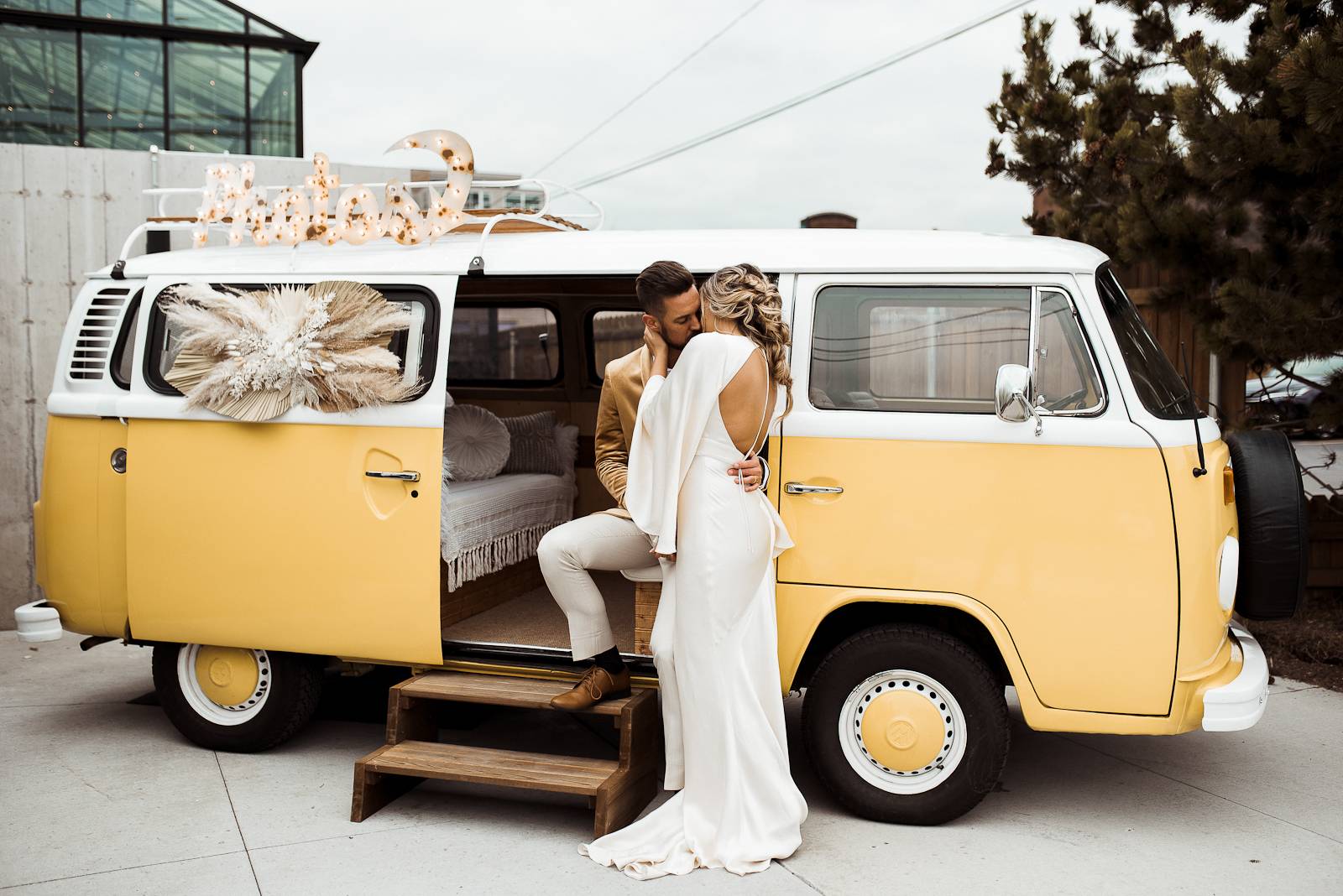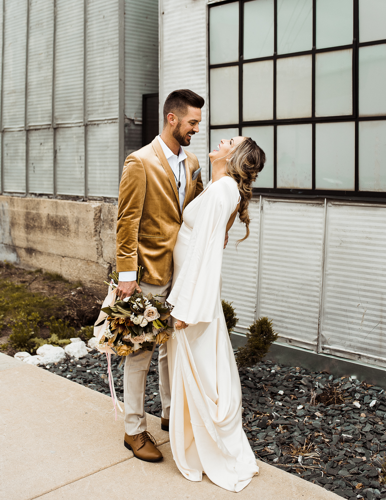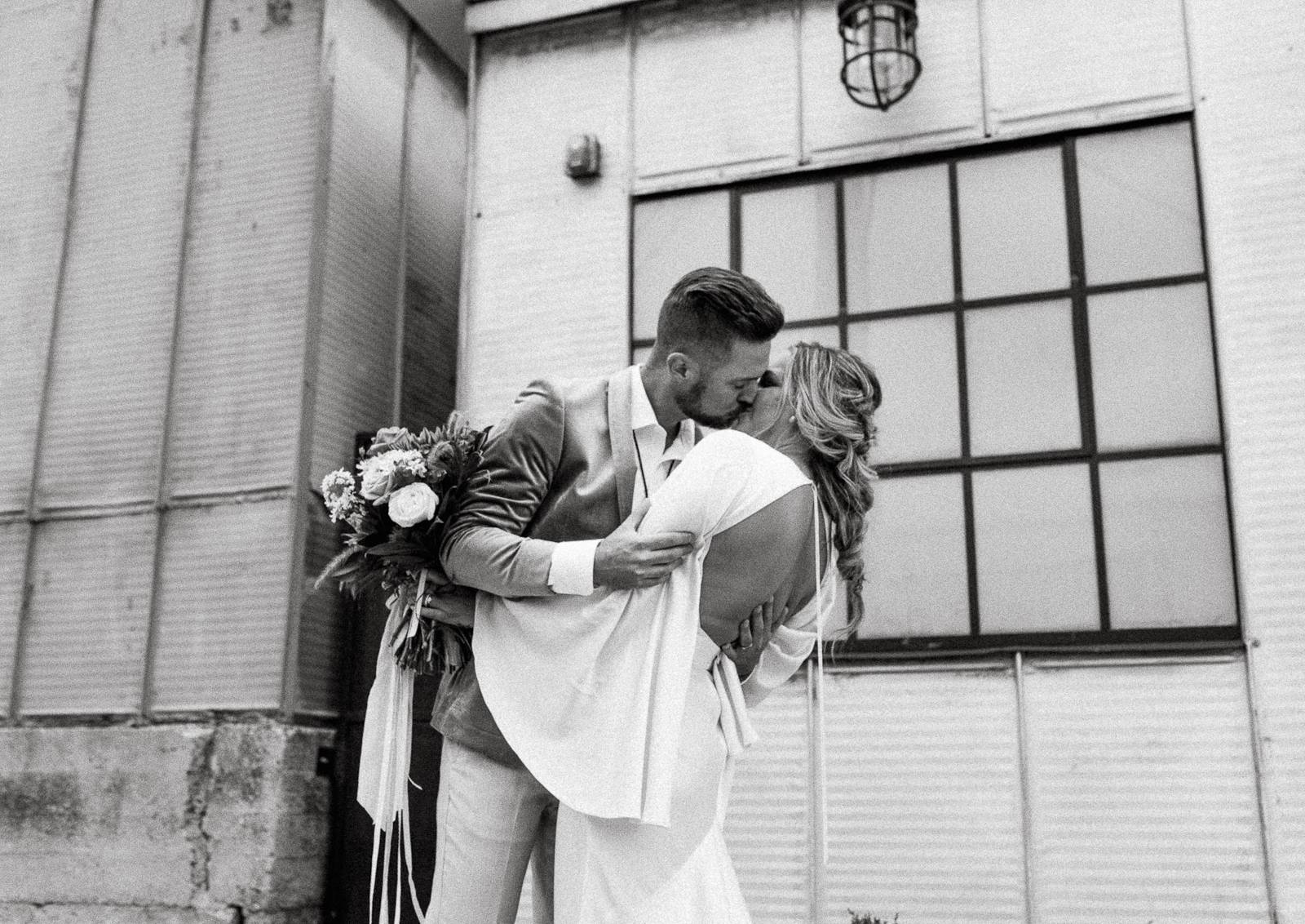 Is there anything sweeter than a warm golden summer sunset? We're loving every detail dripping in sunshine throughout this '70s-inspired modern boho styled shoot at The Tinsmith in downtown Madison! Bell sleeves, bolo ties, contemporary arches, lush blooms, moody vintage details, and the perfect retro photo booth to top of the chic wedding celebration – see it all below!