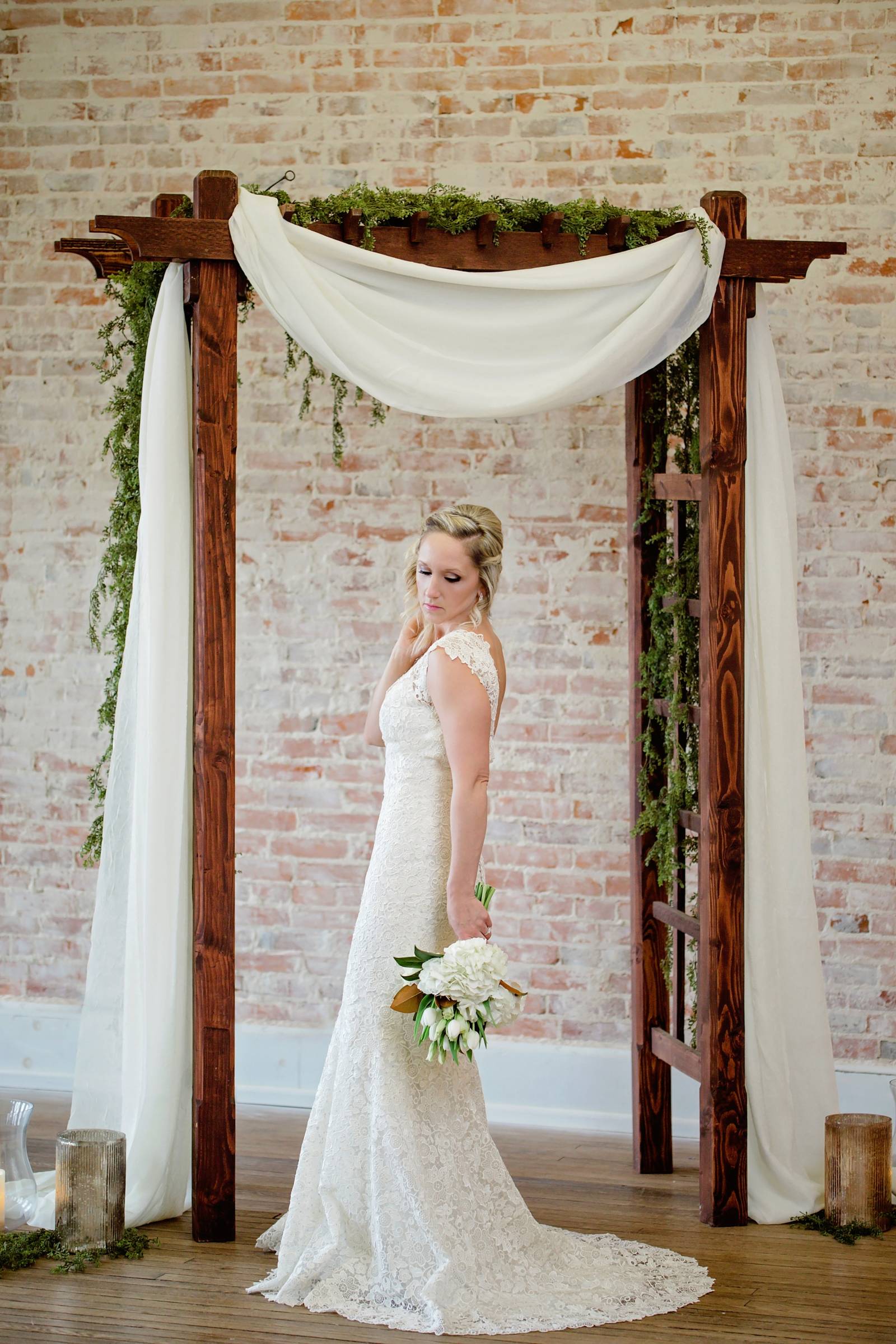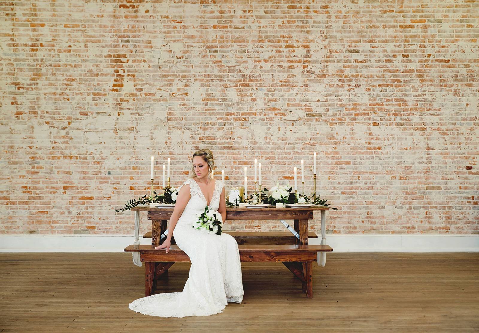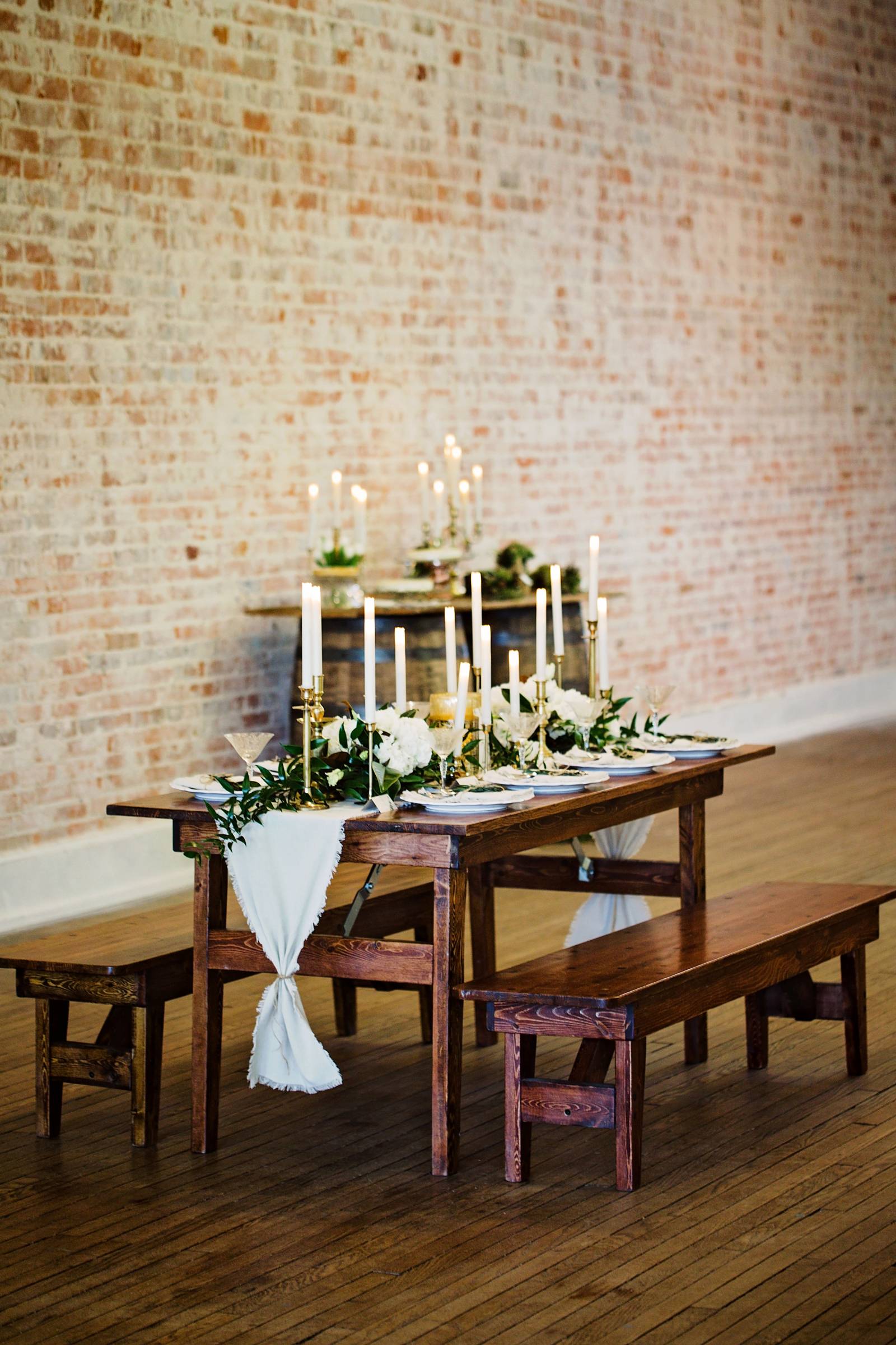 An intimate gathering in a historic ballroom that celebrates a sense of community, today we are so excited to feature the new charming Avalon Ballroom in Reedsburg, WI. The feel is beautiful in a humble fashion through all the elements. LK Bridal captured and curated the space with a styling approach that is organic and simple yet nothing short of whimsy. The exposed brick wall and wood floors create a rustic warehouse backdrop while a sense of history grounds the design. With a gorgeous harvest table crafted from a local artisan to fresh botanical greenery and white blooms, take a peek through the gallery to see it all.