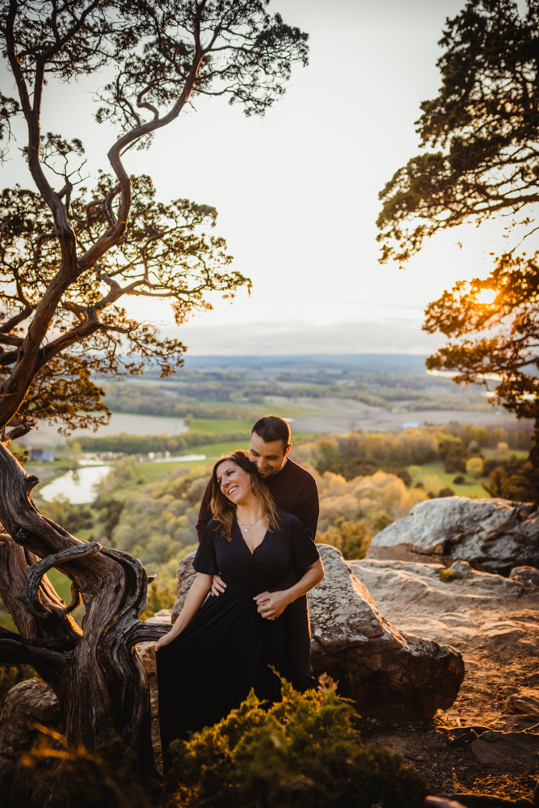 Love and laughter filled the air during the sunlit engagement shoot of Jackie and Dan. Photographed beautifully by Phoenix & Rose Photography and Co. and set against the backdrop of the picturesque Gibraltar Rock State Park. The photos reveal a happy couple with a few appearances of their canine companion. Read more about the plans Jackie and Dan have in place so far for their wedding day below.