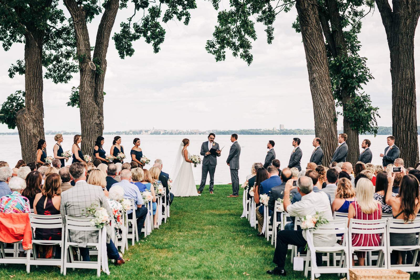 SHARE A BIT ABOUT YOUR SERVICES AND WHAT YOU PROVIDE FOR WEDDING COUPLES: Bishops Bay Country Club is a private country club located in Middleton, WI. We host wedding ceremonies on the shores of Lake Mendota and offer a 6,000 square foot Lakeside Pavilion to host wedding receptions! In addition to our ceremony and reception locations, we also provide catering and beverages for your big day. At Bishops Bay, our Banquet Manager plans, prepares, and executes everything from your tour, to your rehearsal, to day-of coordination. We have an array of beautiful locations for your wedding day pictures, such as our pier for stunning lake photos with downtown Madison skyline views in the background, nature areas filled with large old trees, as well as a historic building rich with character! We are also proud to offer getting ready suites for our couples to enjoy as they prepare for their big day.
