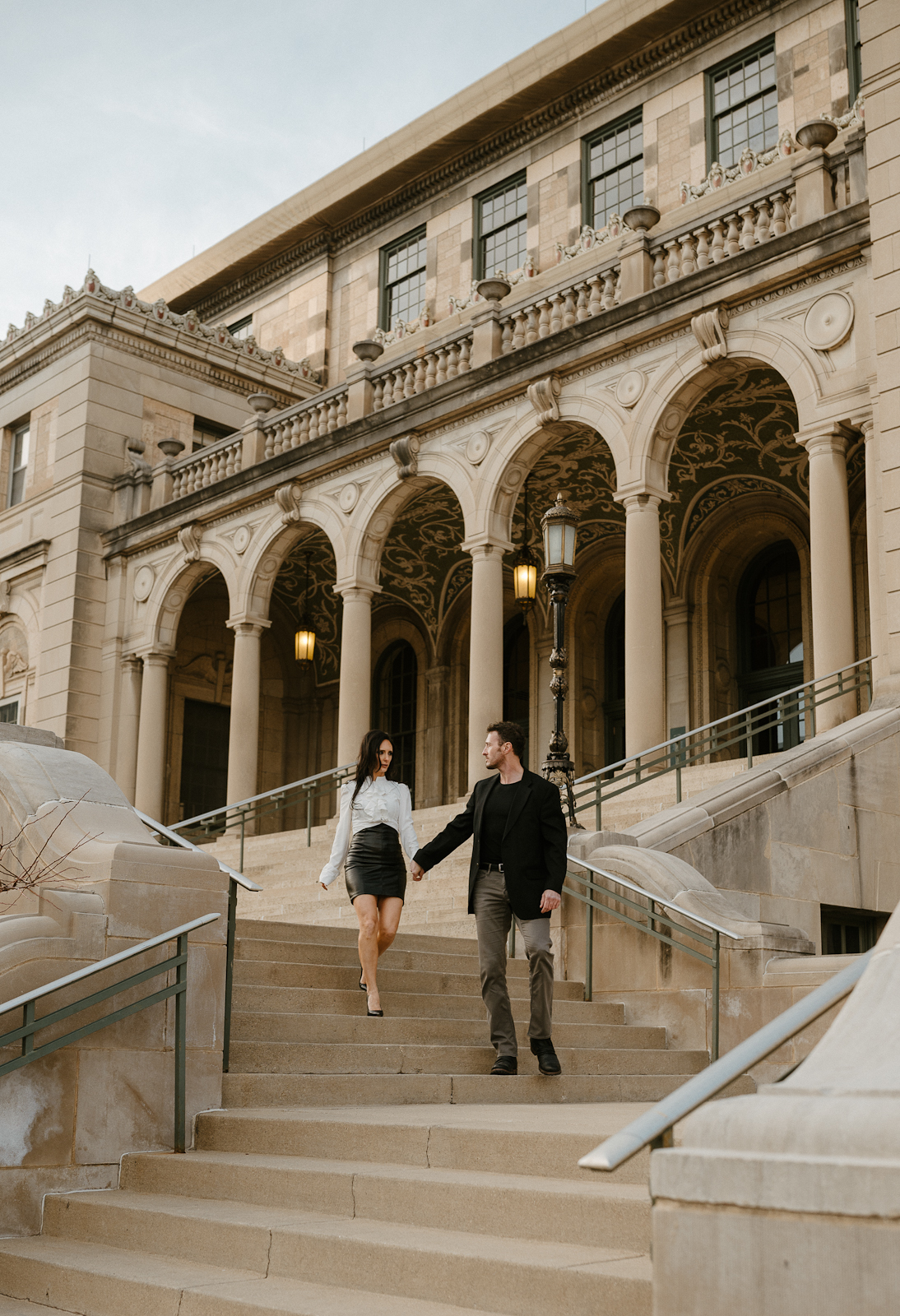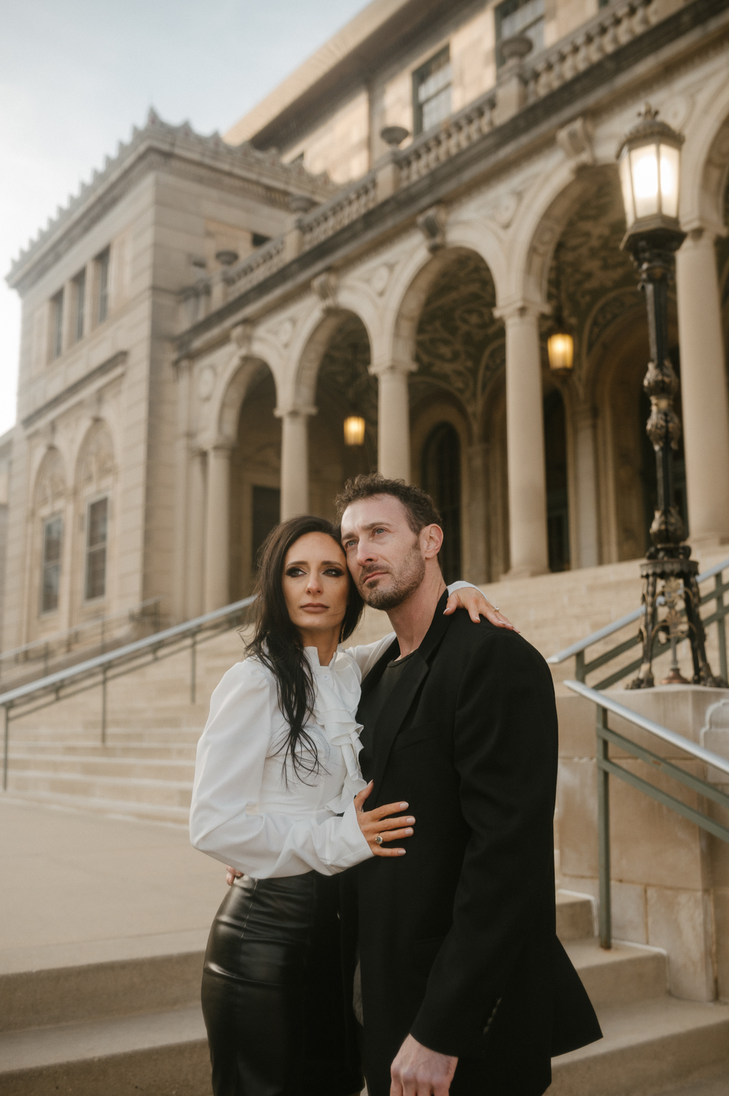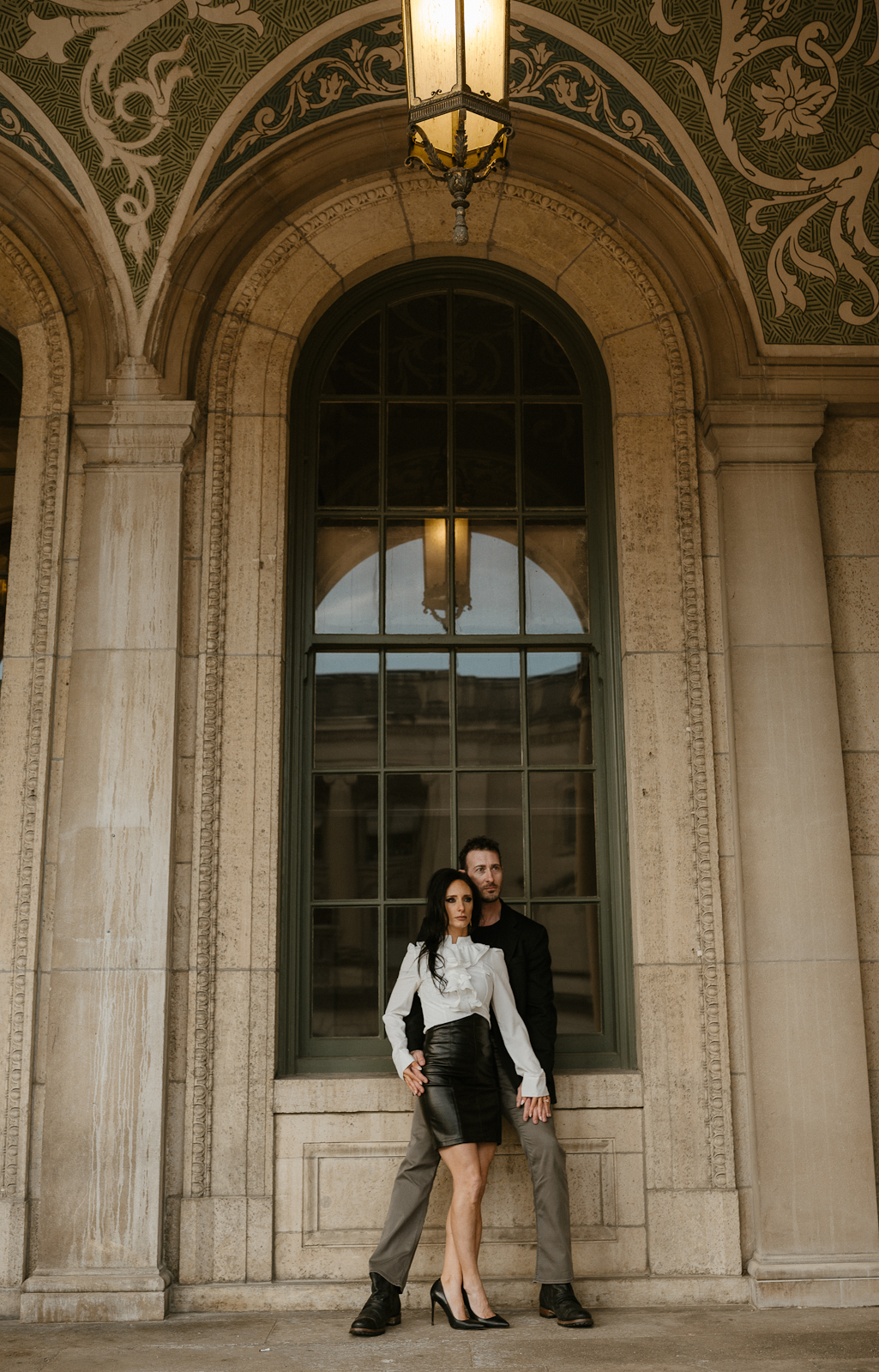 These two dreamed up a gorgeous vintage, intimate, vogue-inspired engagement session with Anna Marie Photography you don't want to miss. Their statement style paired with the unique architectural backdrops of downtown Madison and the UW campus combine to create the stunning work of art their session was below!
