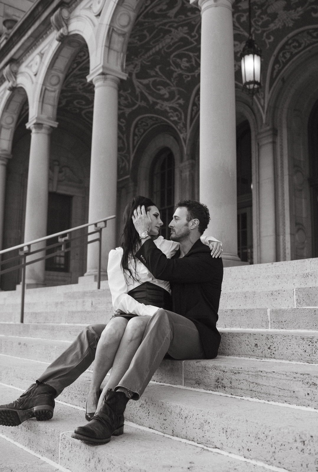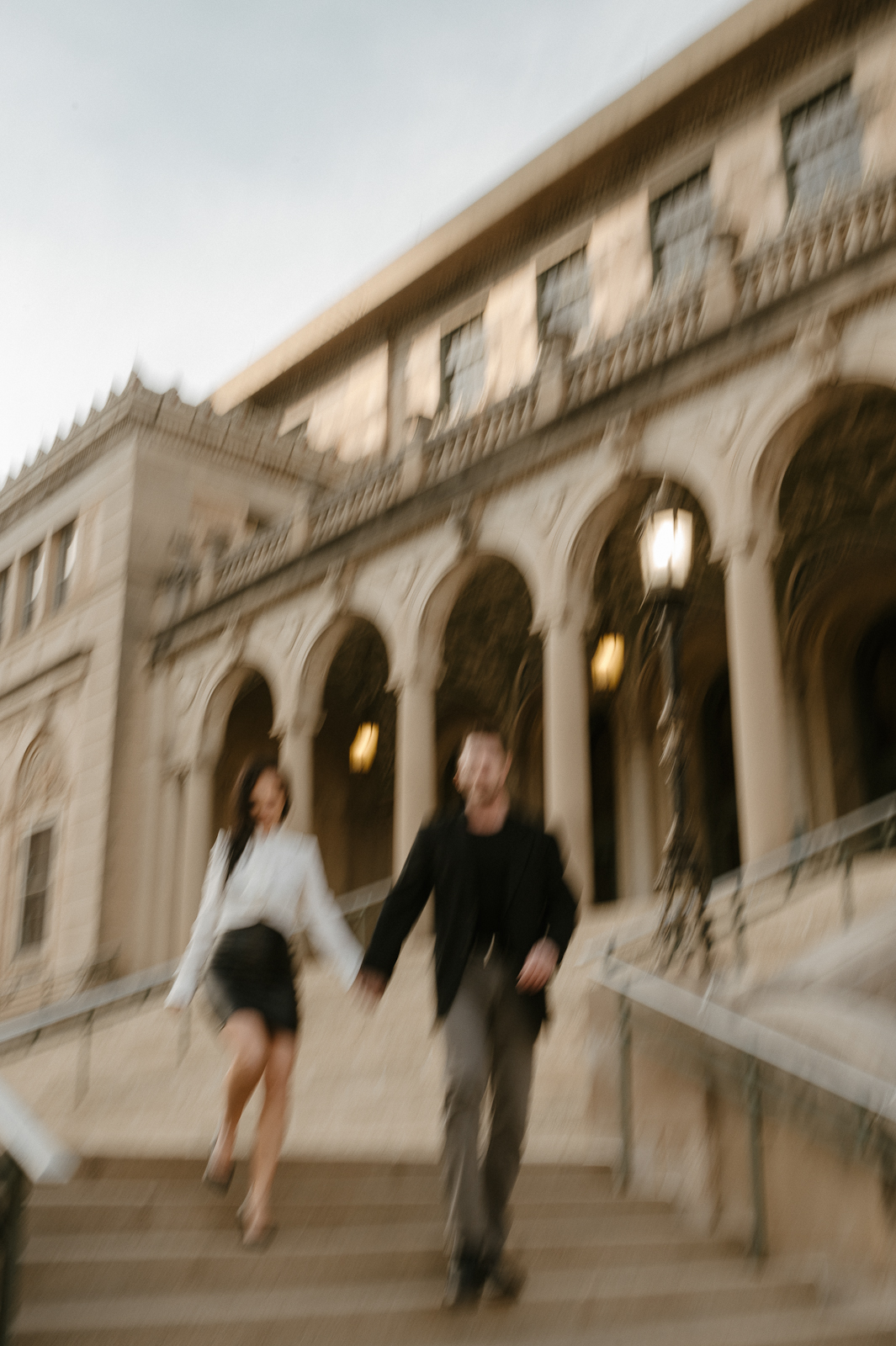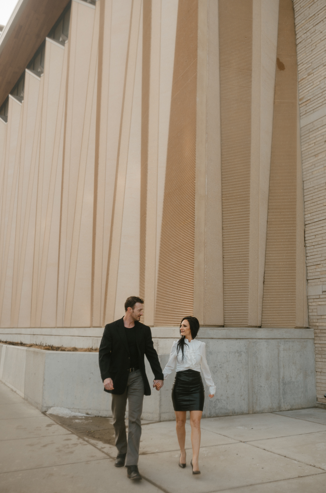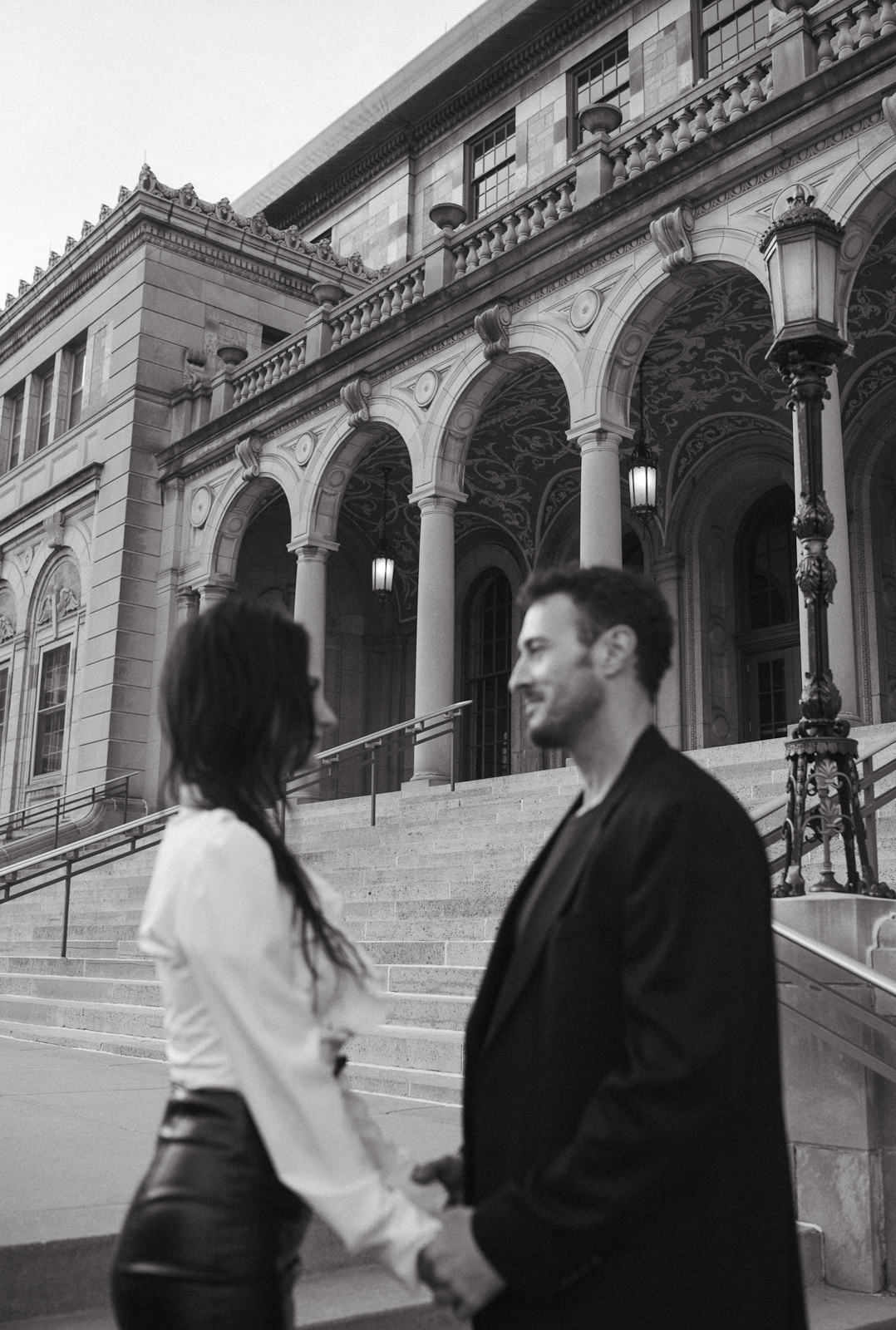 These two dreamed up a gorgeous vintage, intimate, vogue-inspired engagement session with Anna Marie Photography you don't want to miss. Their statement style paired with the unique architectural backdrops of downtown Madison and the UW campus combine to create the stunning work of art their session was below!